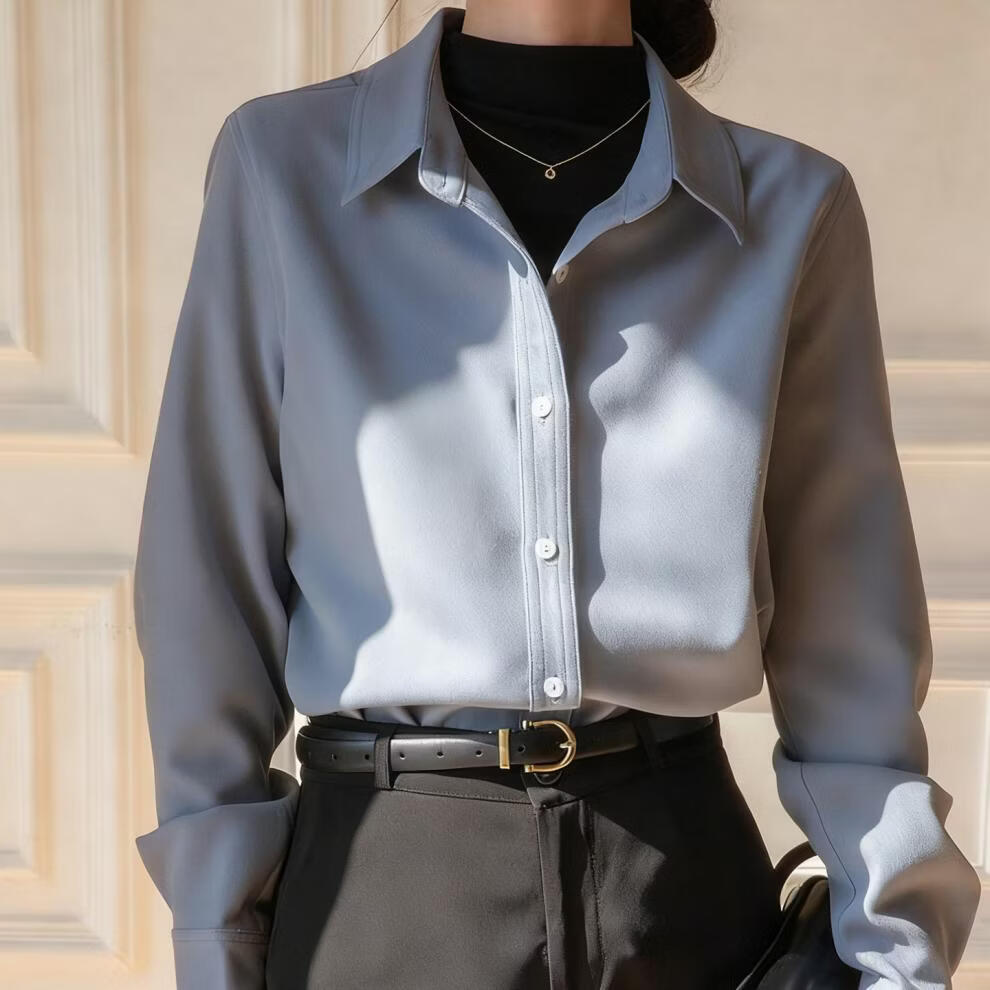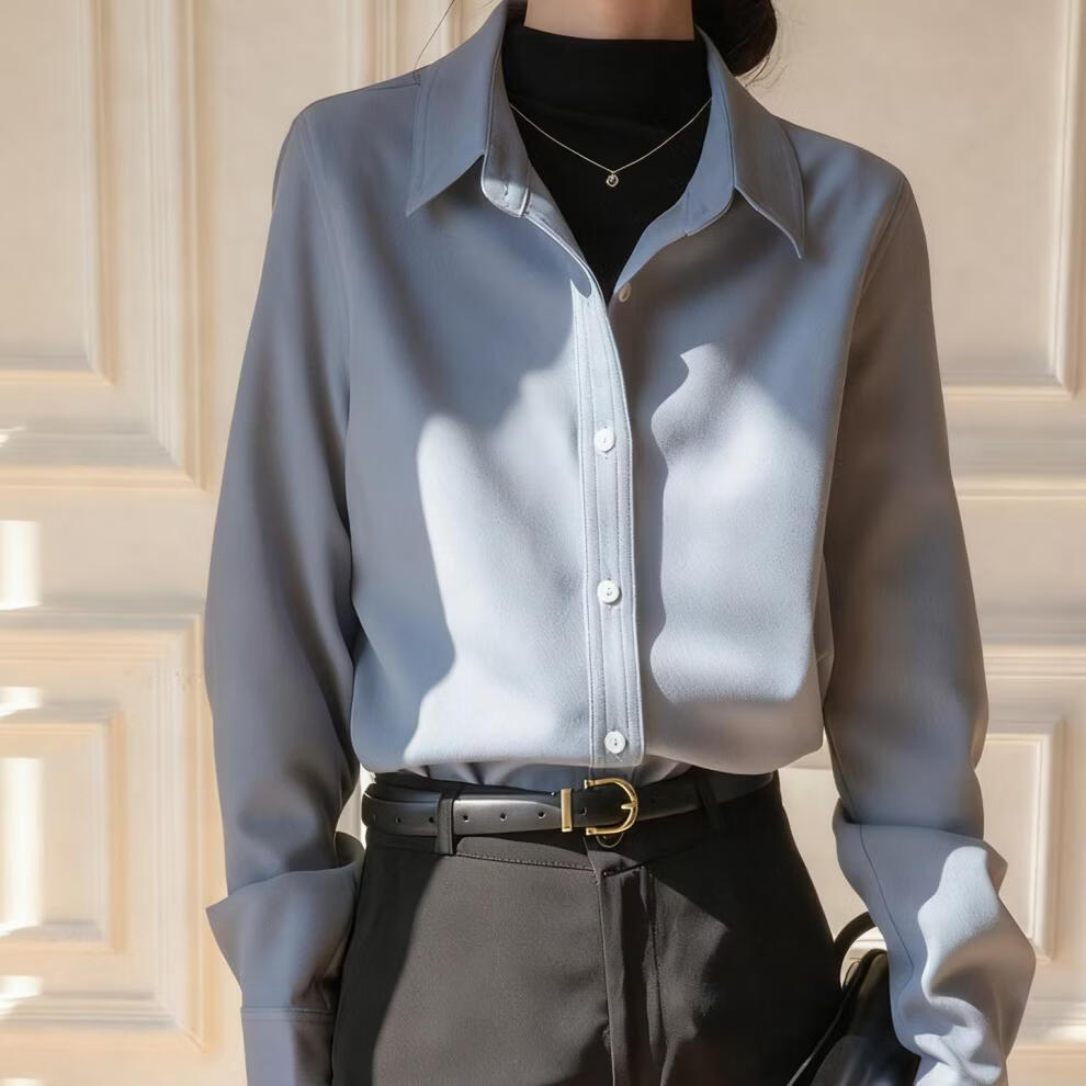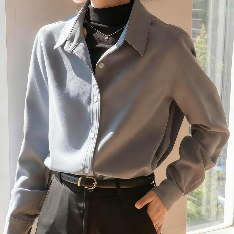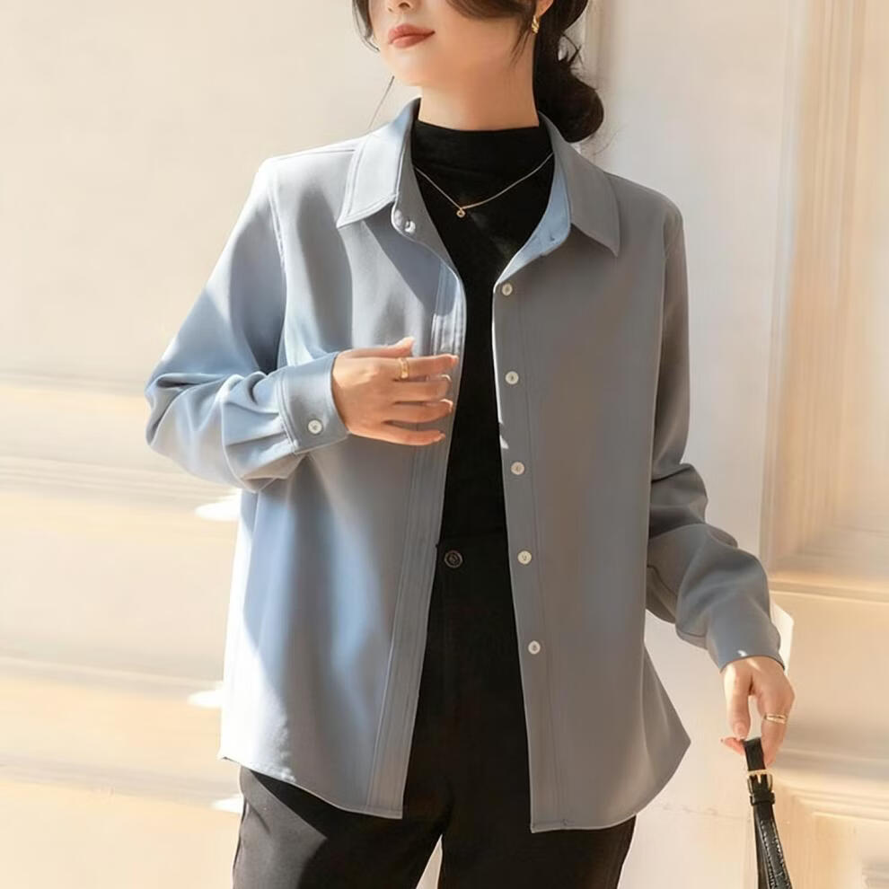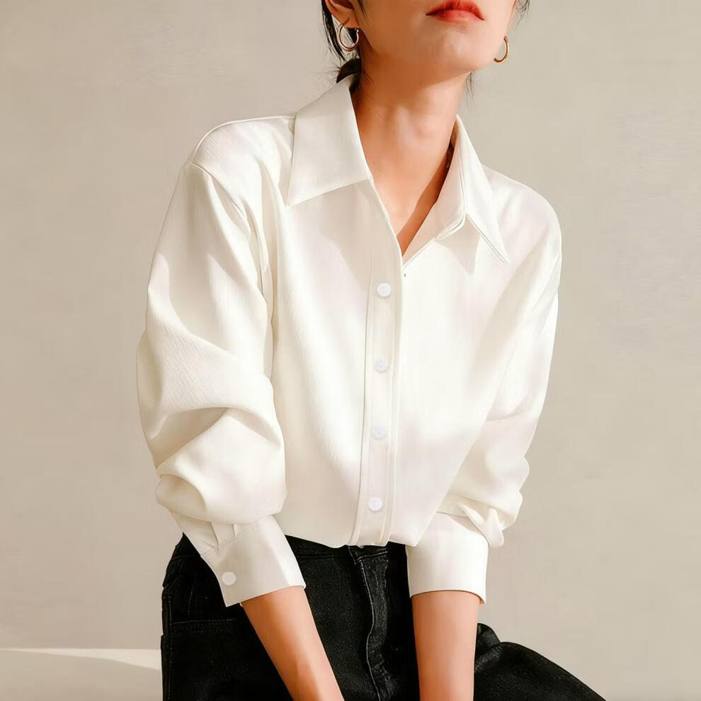 Woodpecker simple style brushed white shirt women's long-sleeved velvet thickened shirt autumn and winter professional base layering top white long sleeve S
