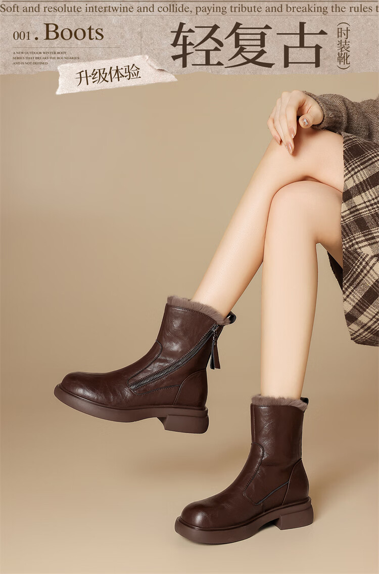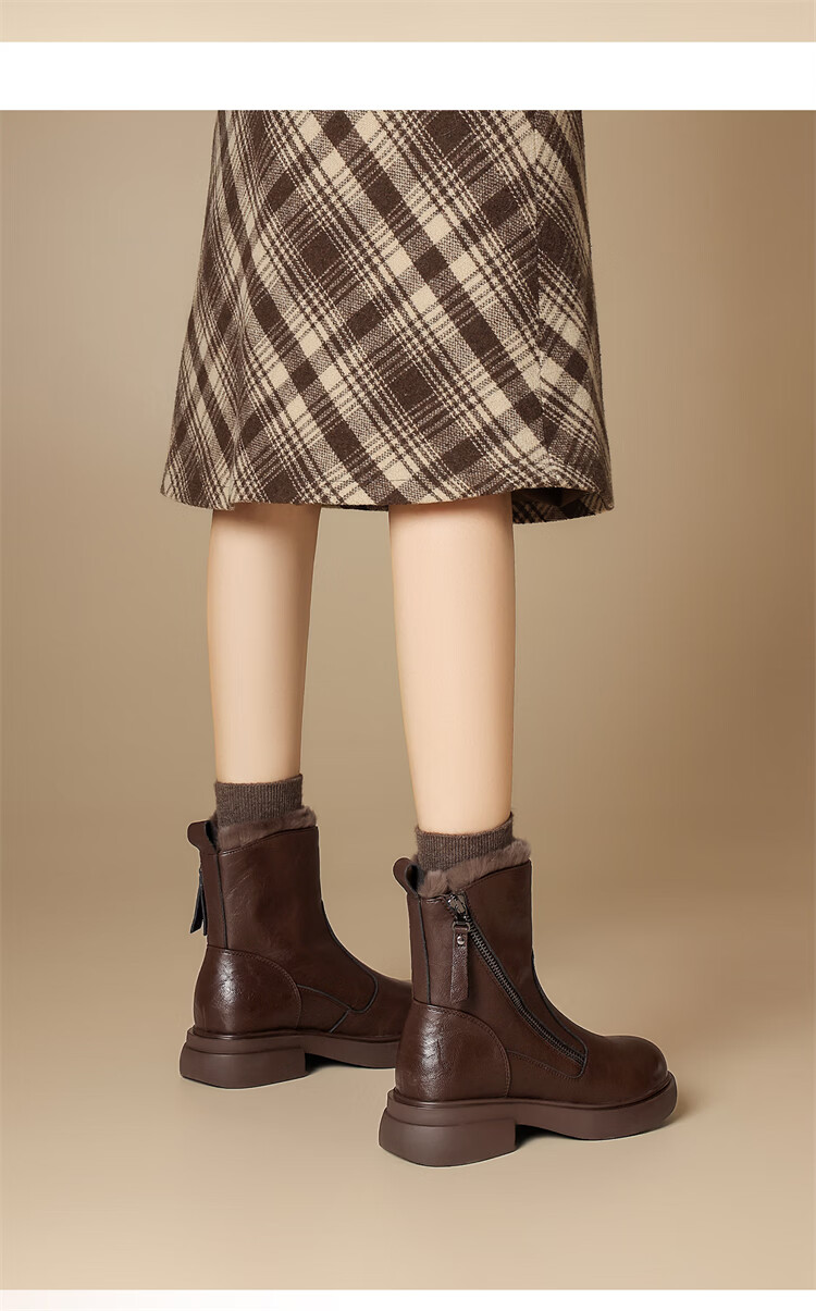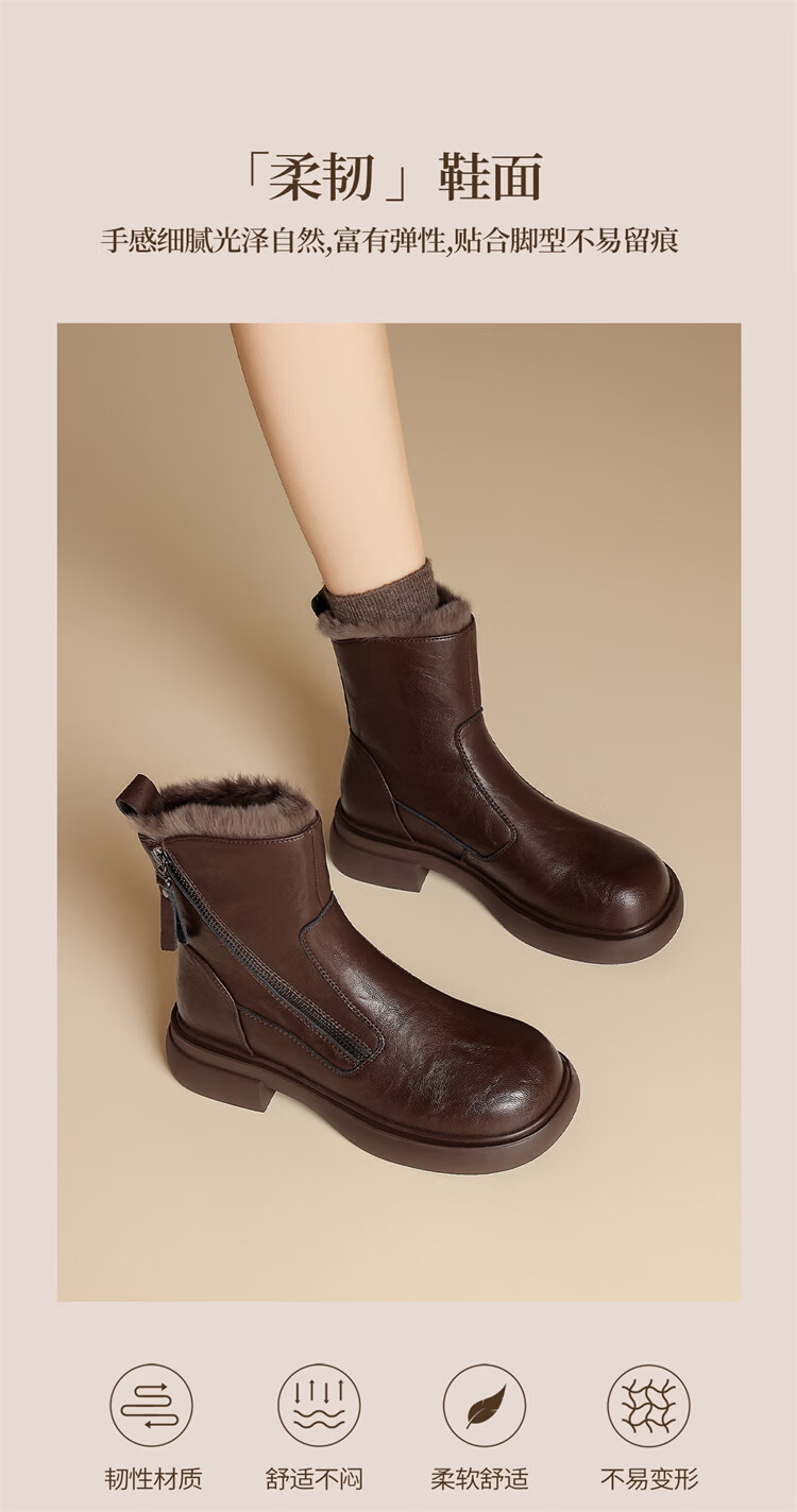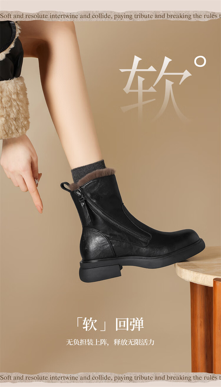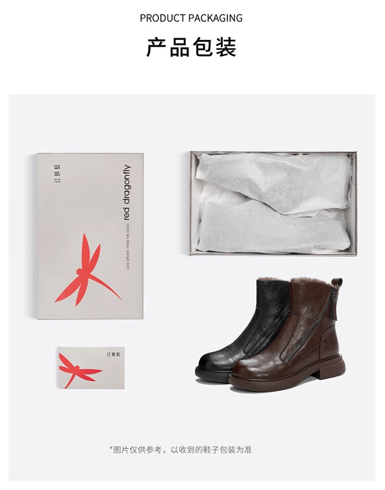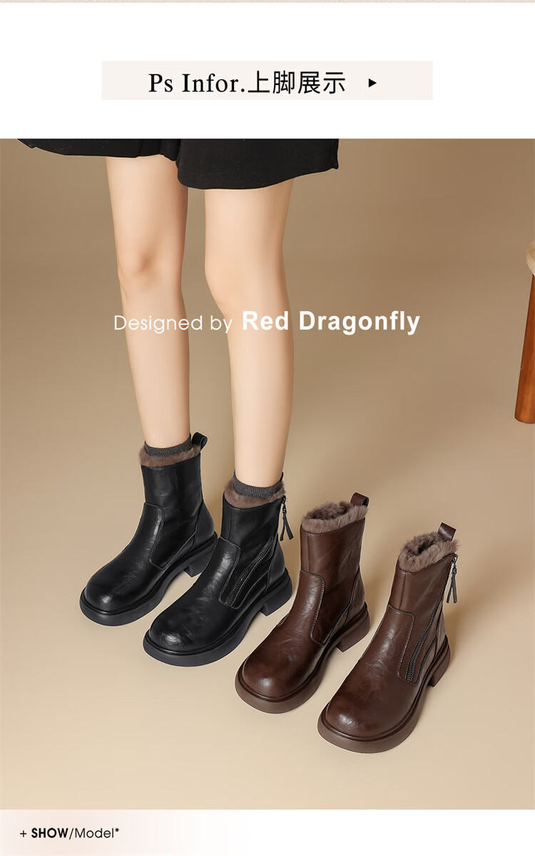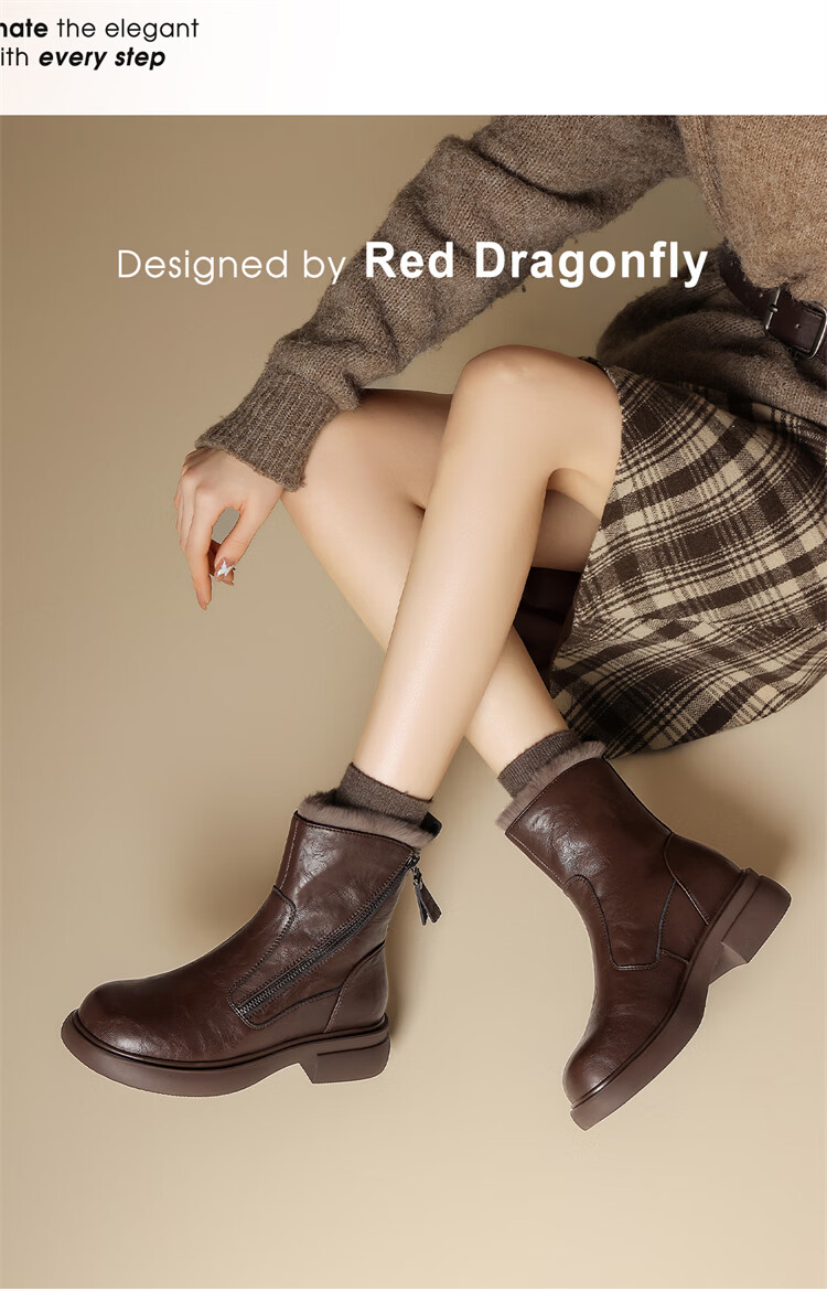 Red Dragonfly Short Boots for Women British Style Versatile Velvet Thickened Snow Boots Warm Winter 2025 New Black Velvet Heel Height 4.1cm 35 (225mm)