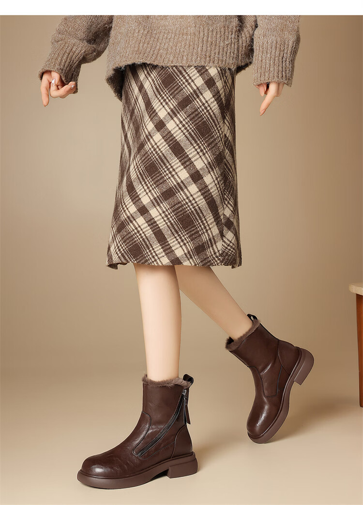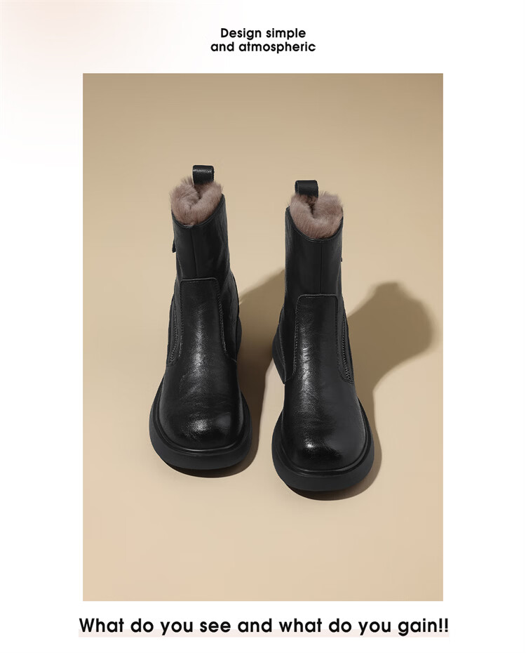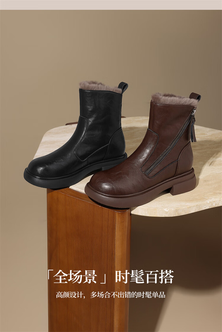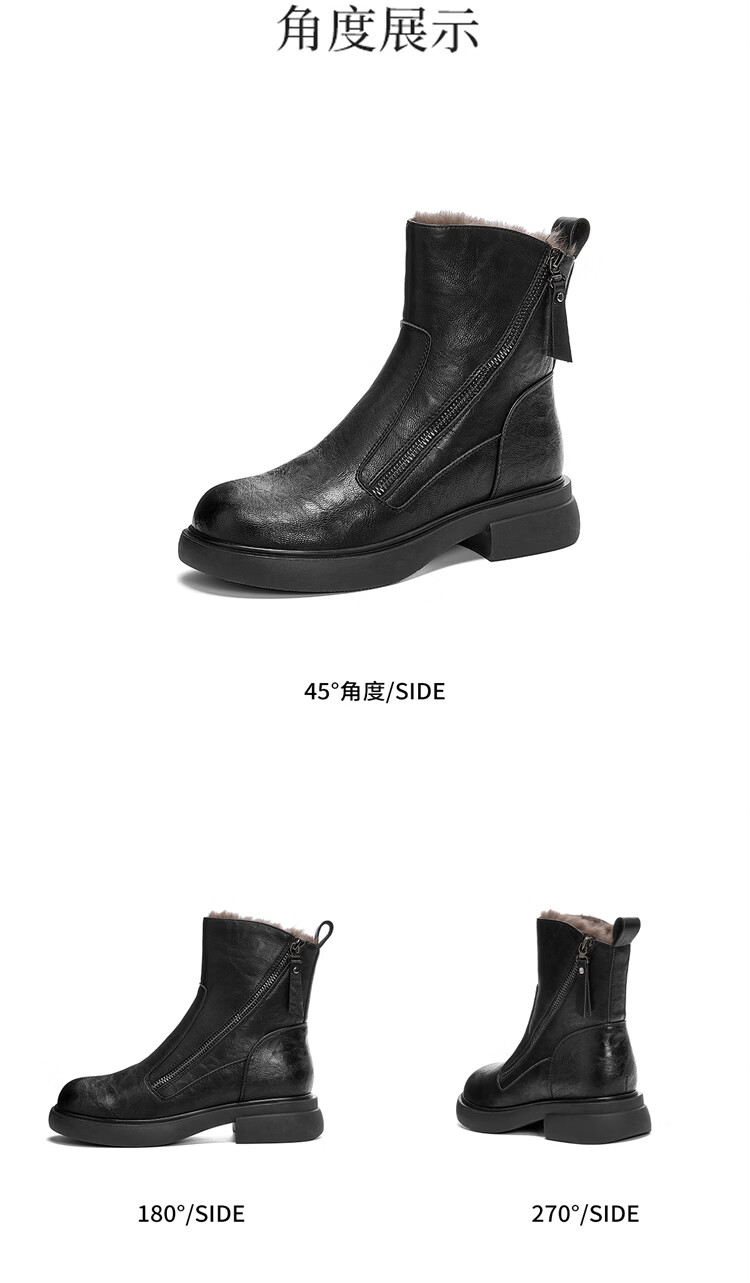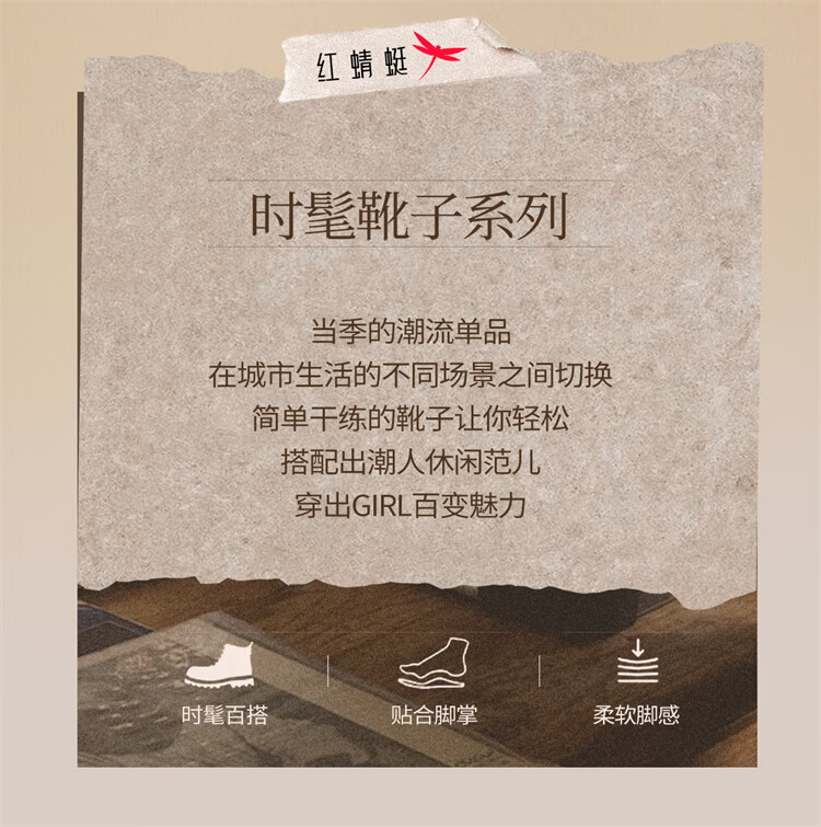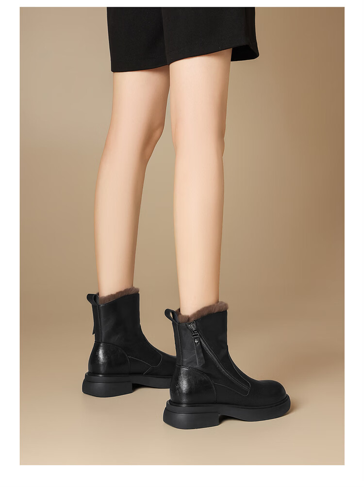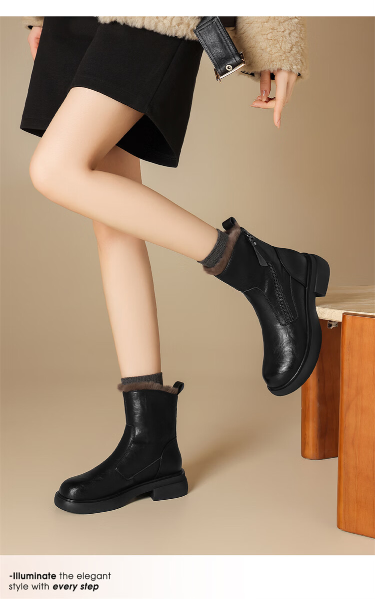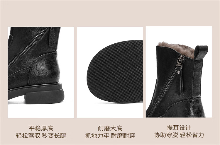 Red Dragonfly Short Boots for Women British Style Versatile Velvet Thickened Snow Boots Warm Winter 2025 New Black Velvet Heel Height 4.1cm 35 (225mm)