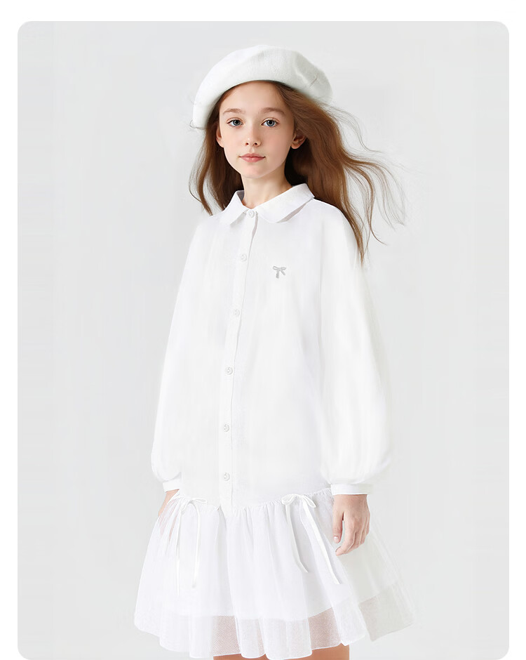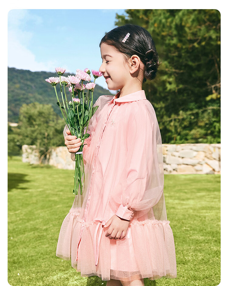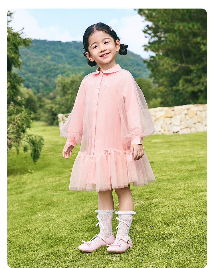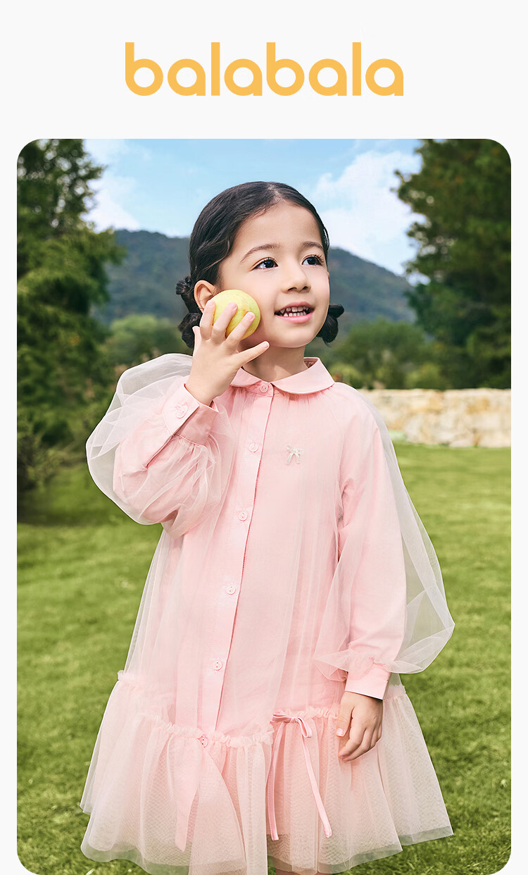 BALABALA balaOne BALABALA children's clothing children's dress girls 2026 new spring dress shirt mesh skirt ballet pink 00366 90