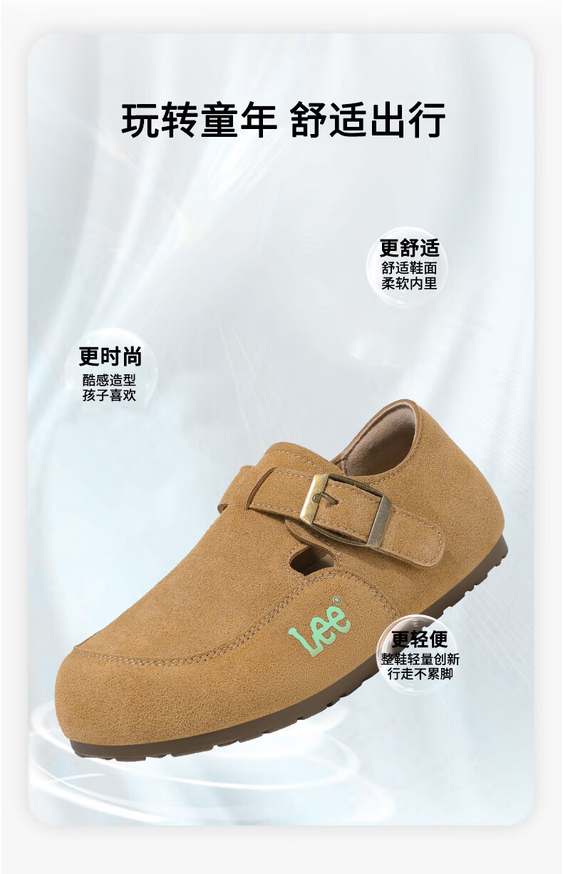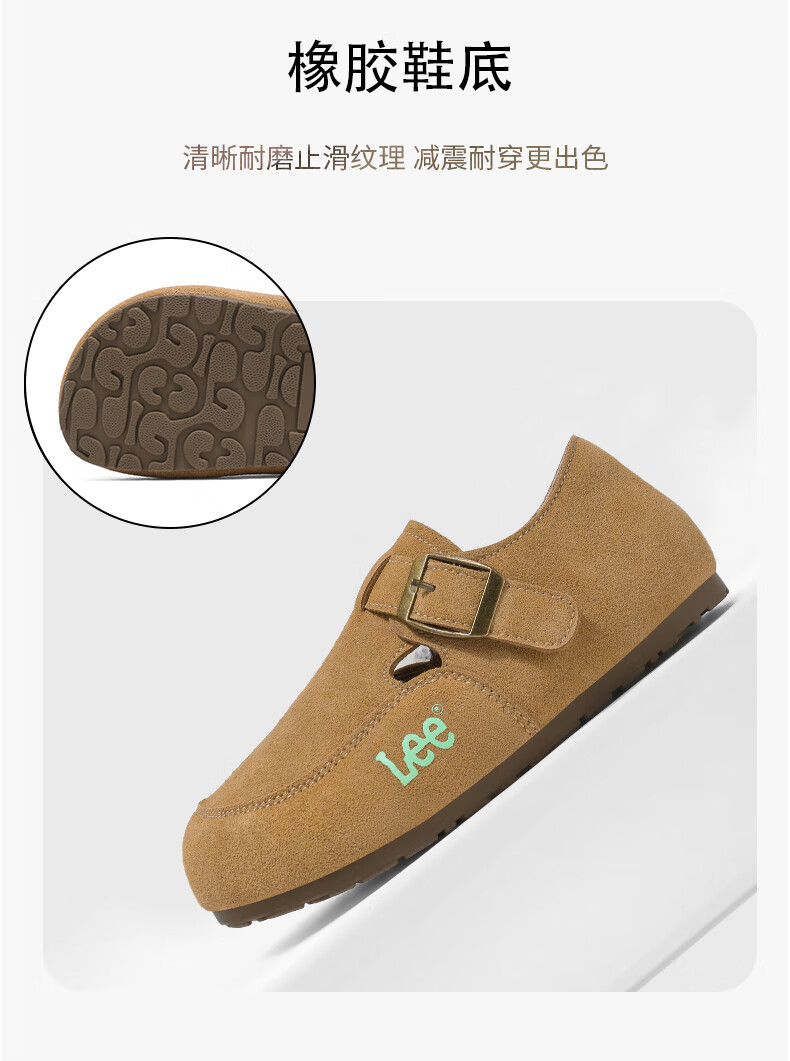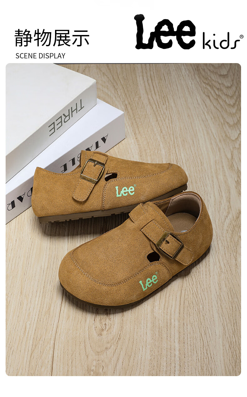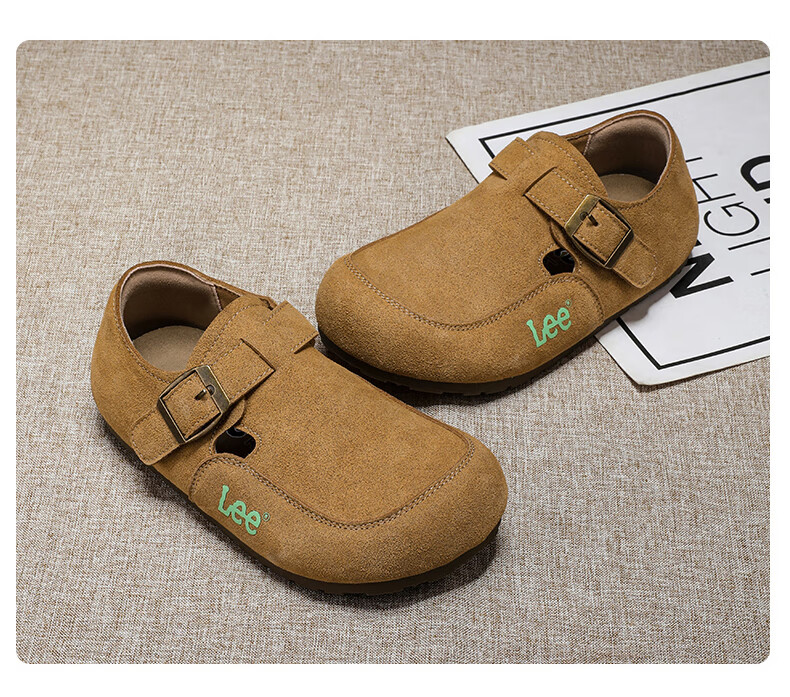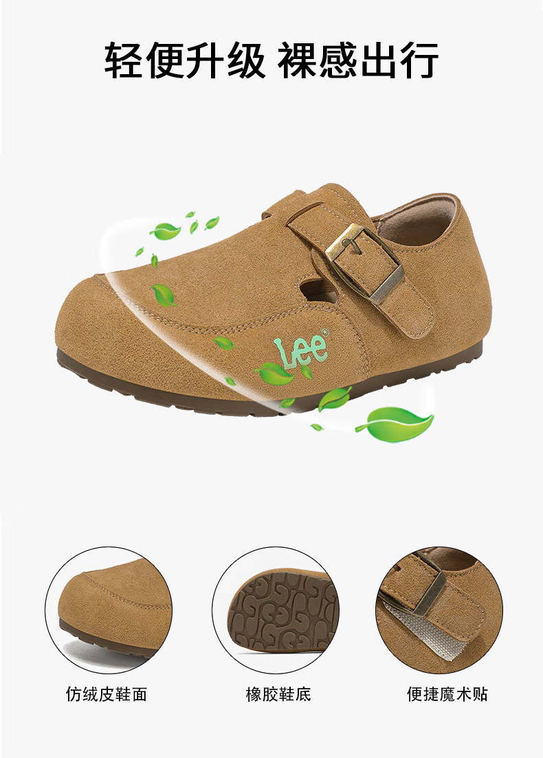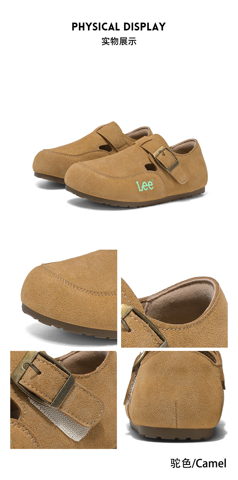 LEE KIDS Children's Shoes Autumn New Children's Wear-Resistant Casual Shoes for Boys and Adults One-Piece Birkenstock Shoes Soft-soled Leather Shoes for Girls Camel 26 Recommended Foot Length 160mm