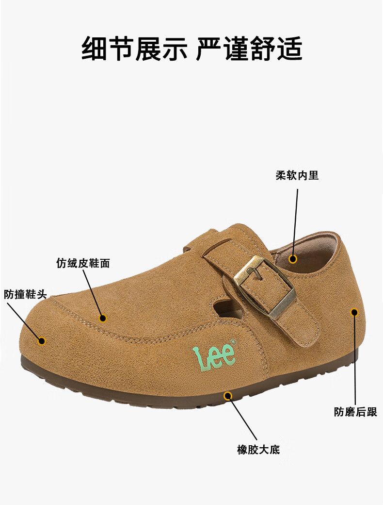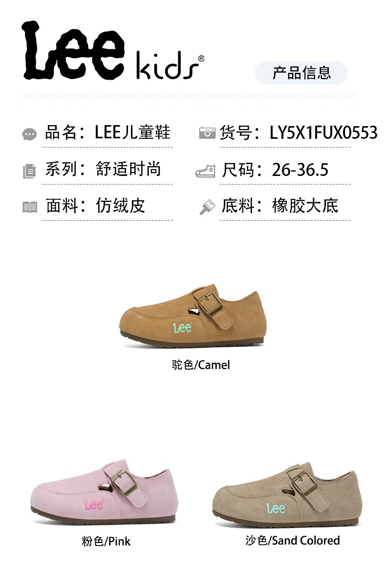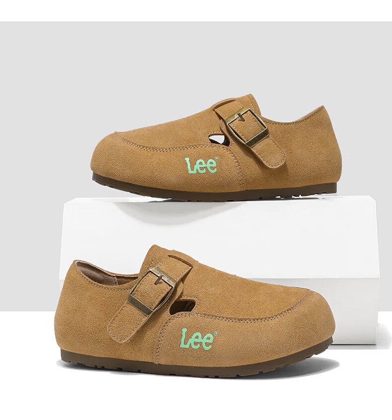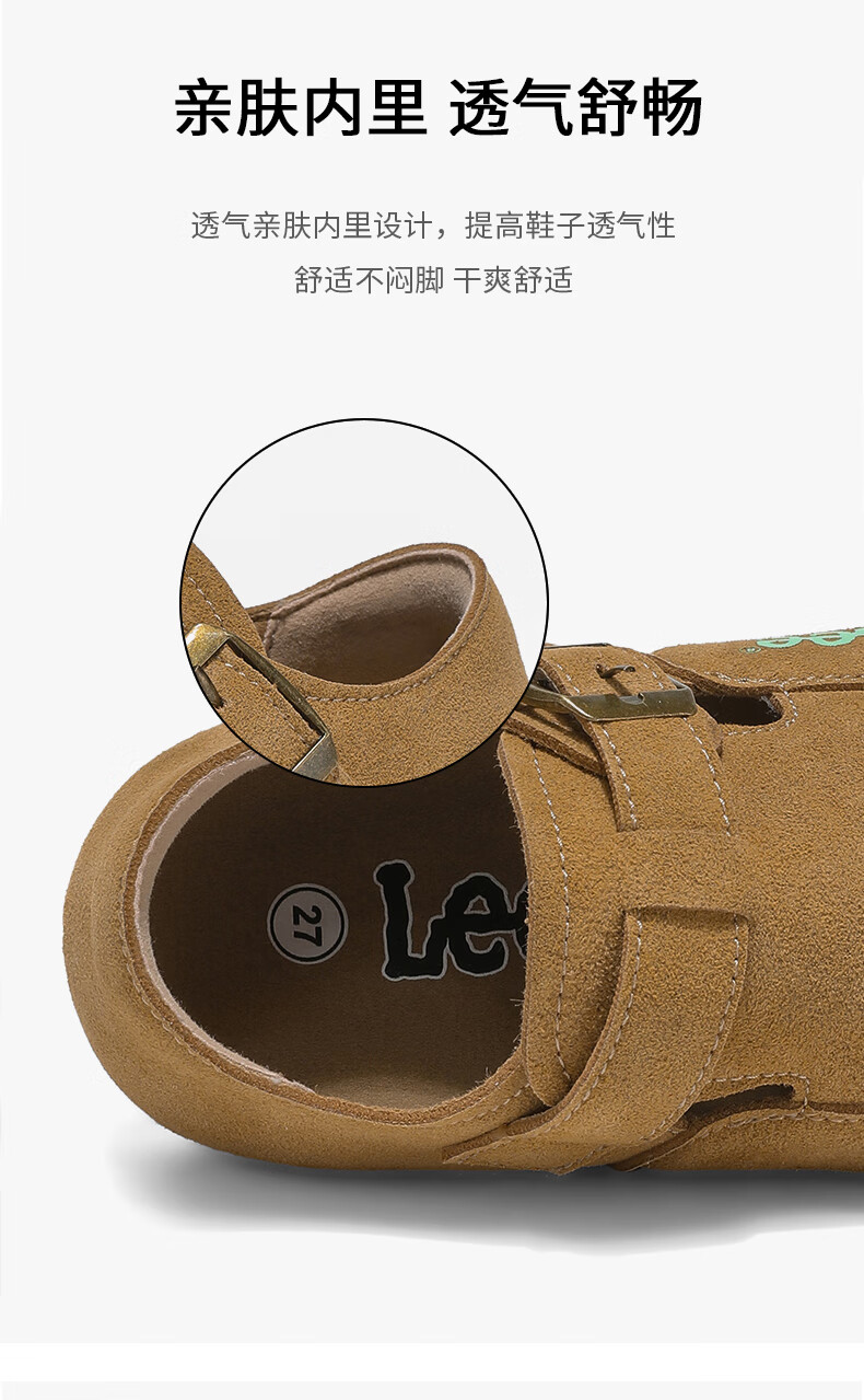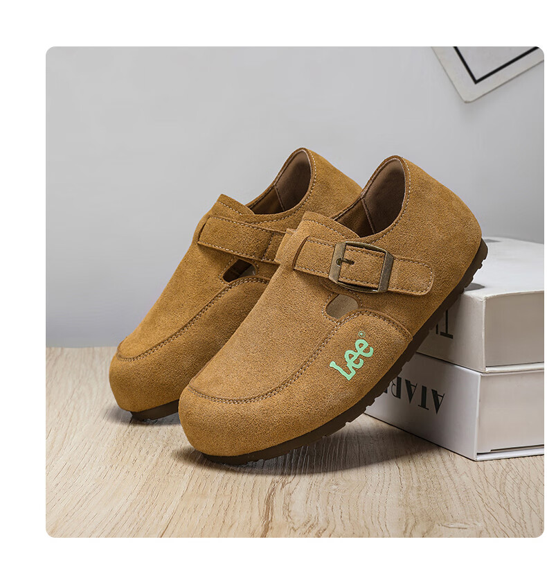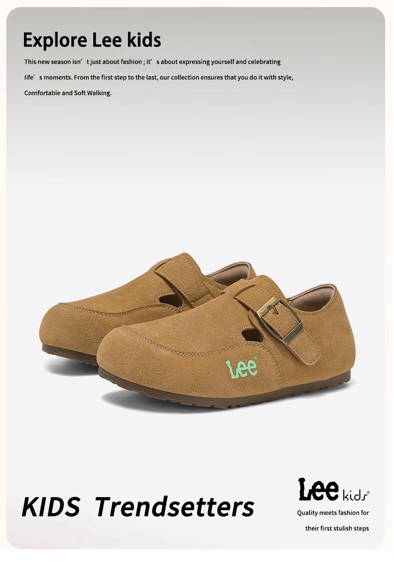 LEE KIDS Children's Shoes Autumn New Children's Wear-Resistant Casual Shoes for Boys and Adults One-Piece Birkenstock Shoes Soft-soled Leather Shoes for Girls Camel 26 Recommended Foot Length 160mm