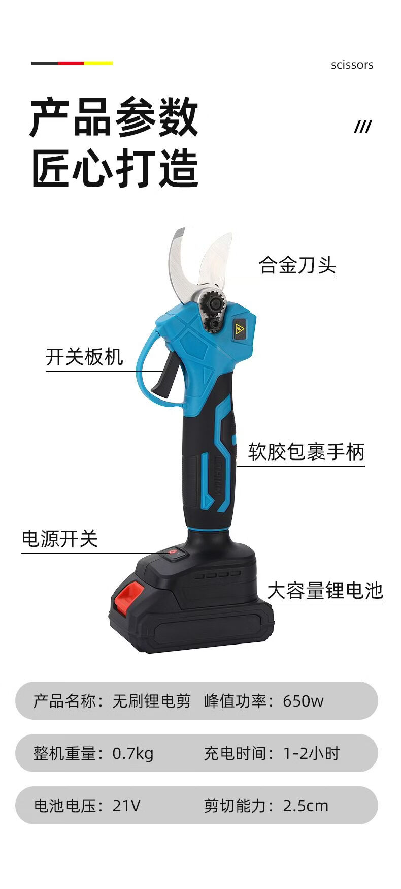 Aoyanlai electric scissors, rechargeable tree shears, lithium electric scissors, powerful garden fruit tree pruners, branch electric shears, pruning artifact, one bare metal (excluding other accessories boxes)