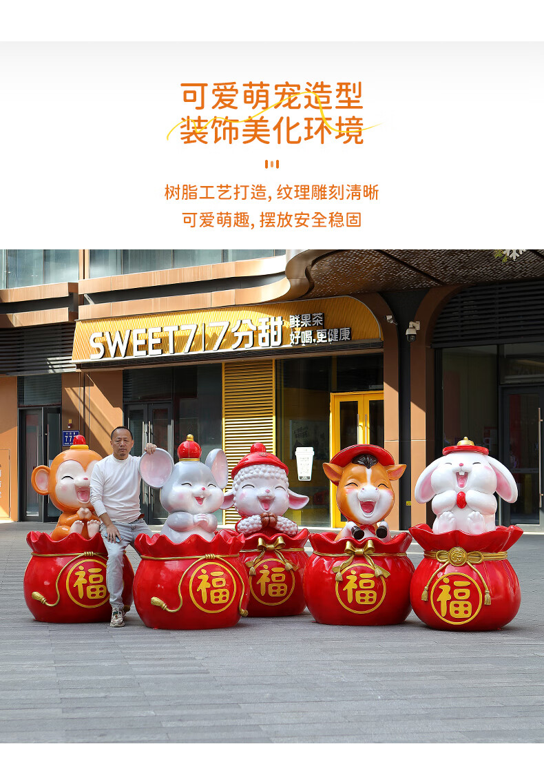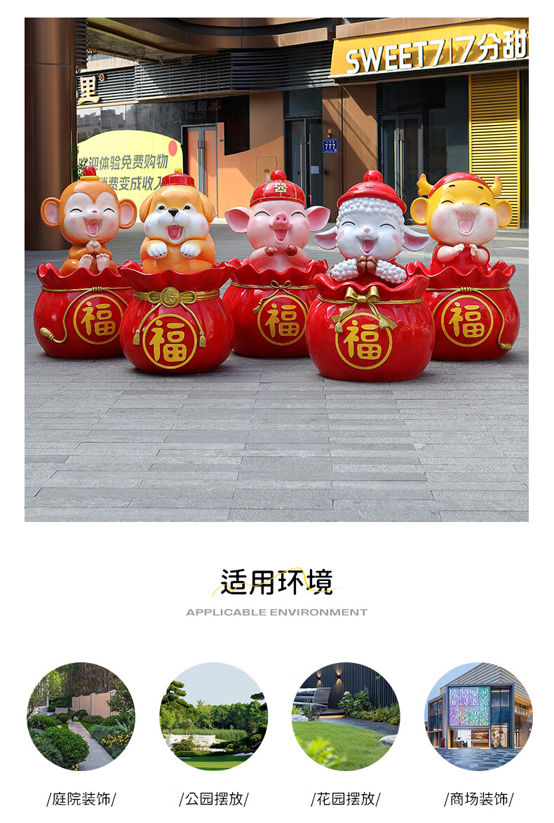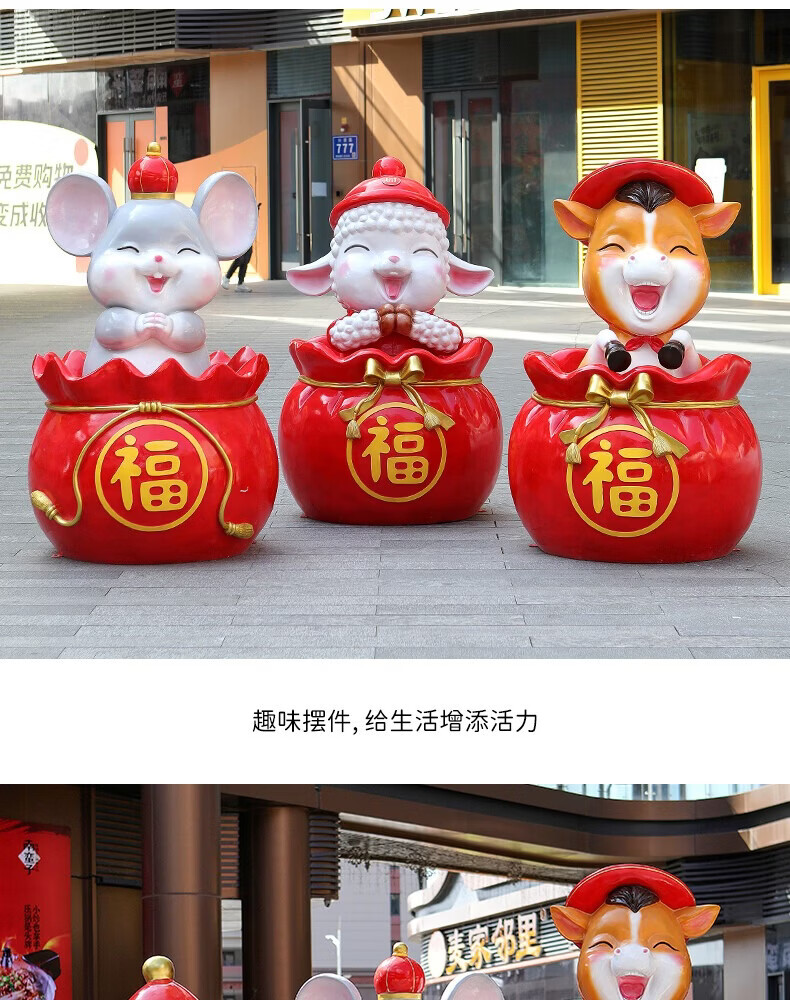 Shanshuiyuan 2026 New Year Outdoor Garden Twelve Zodiac Fiberglass Sculptures Cartoon Animals Spring Festival Shopping Mall Decorative Ornaments For more style combinations, please consult customer service