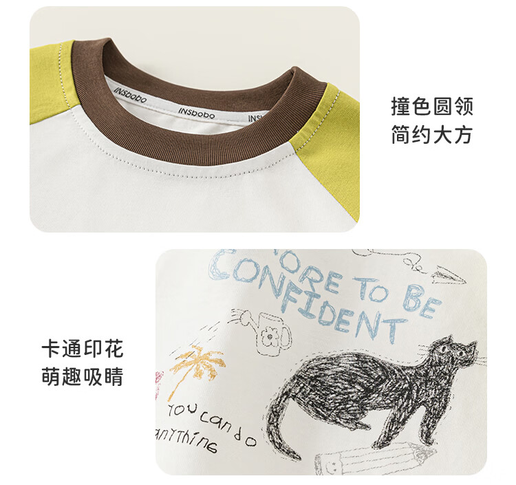INSBOBOINSbobo children's bottoming shirt 2026 spring pure cotton T-shirt boys new baby children's clothing spring and autumn girls' tops white 80