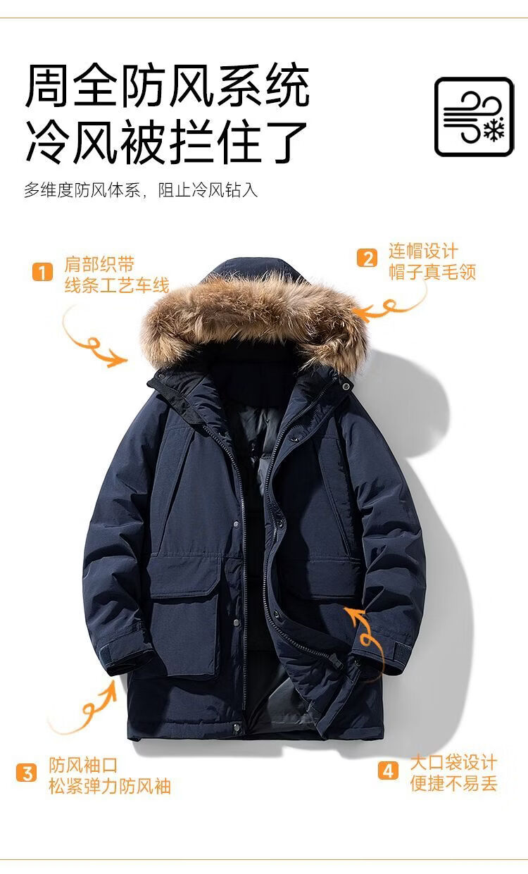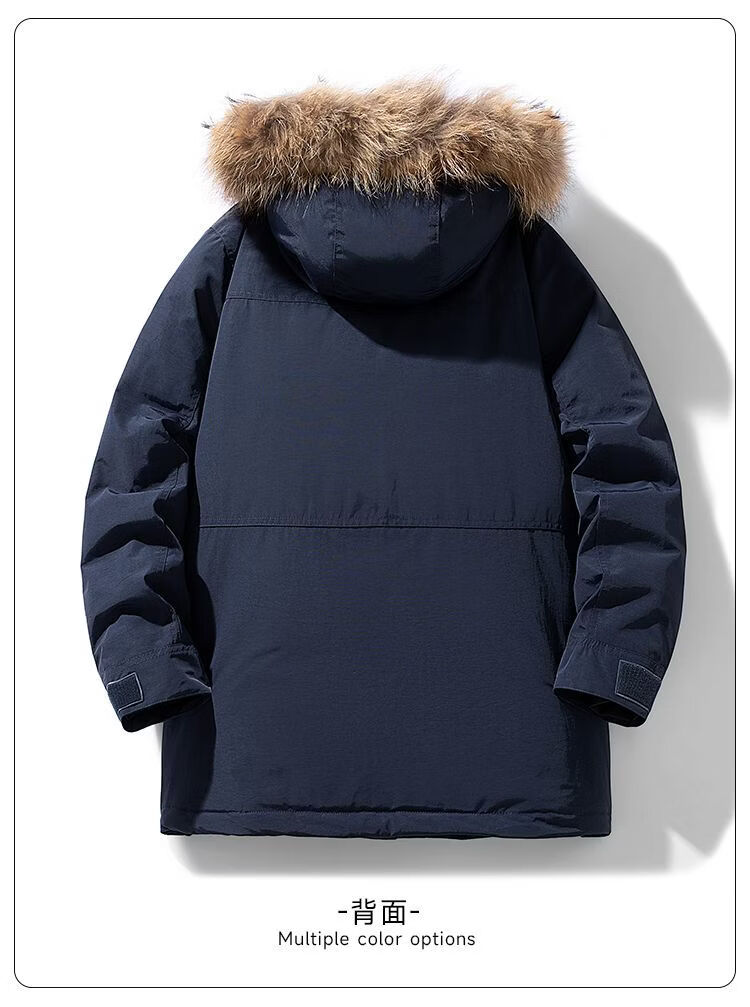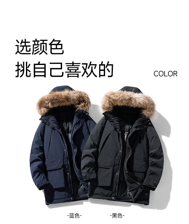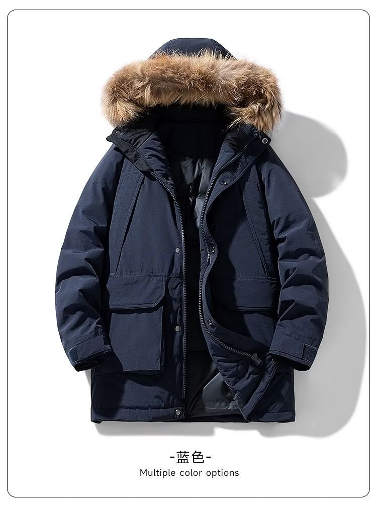 PANMAX Winter Down Jacket Youth Mid-Length New Hooded Fur Collar Warm Fashionable Jacket Thickened Men Blue S Recommended 80-105 Jin Jin equals 0.5 kg