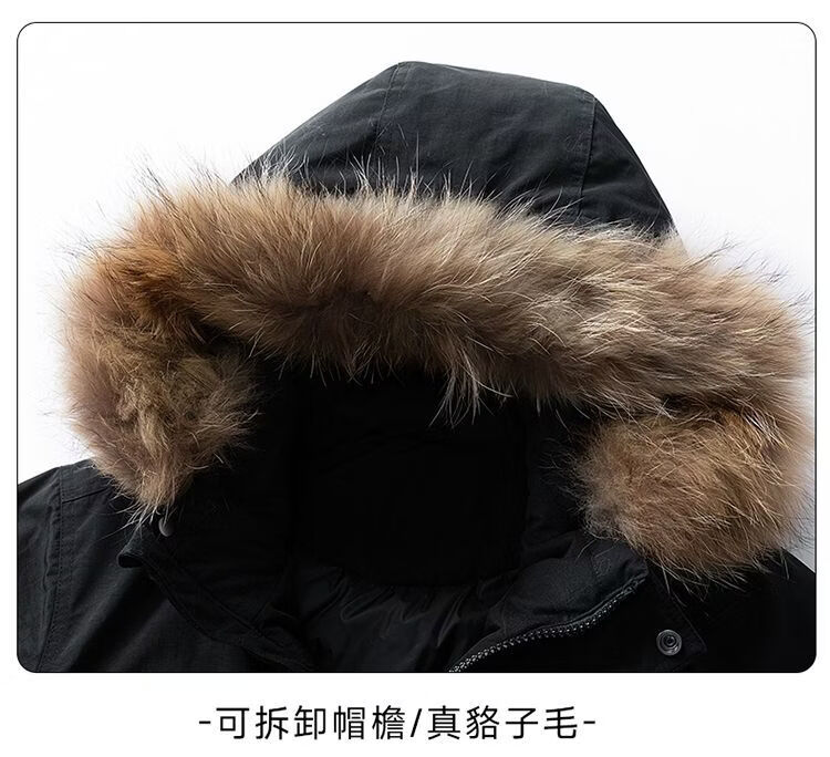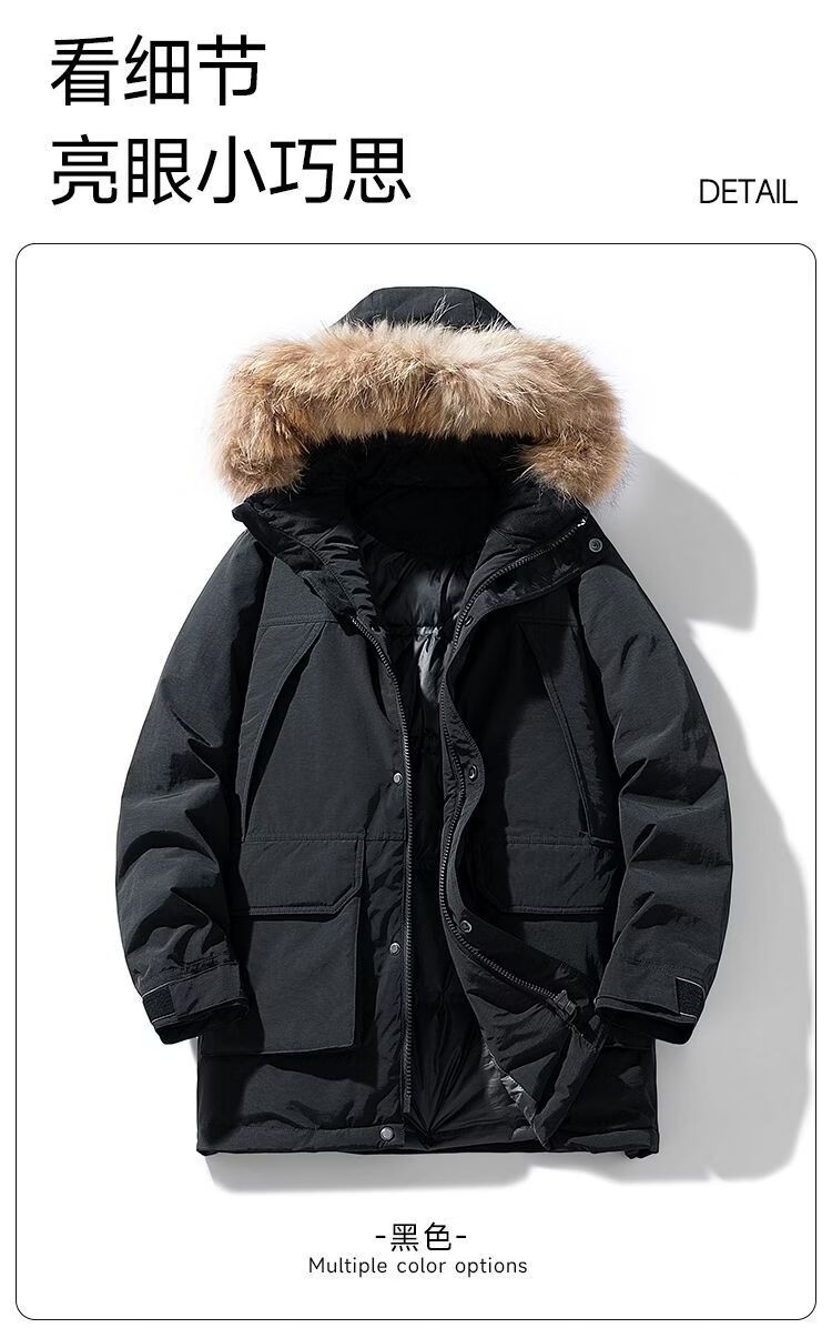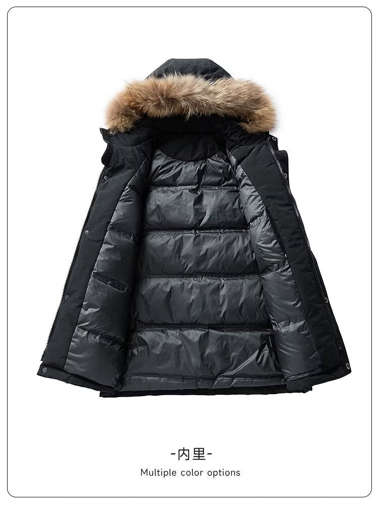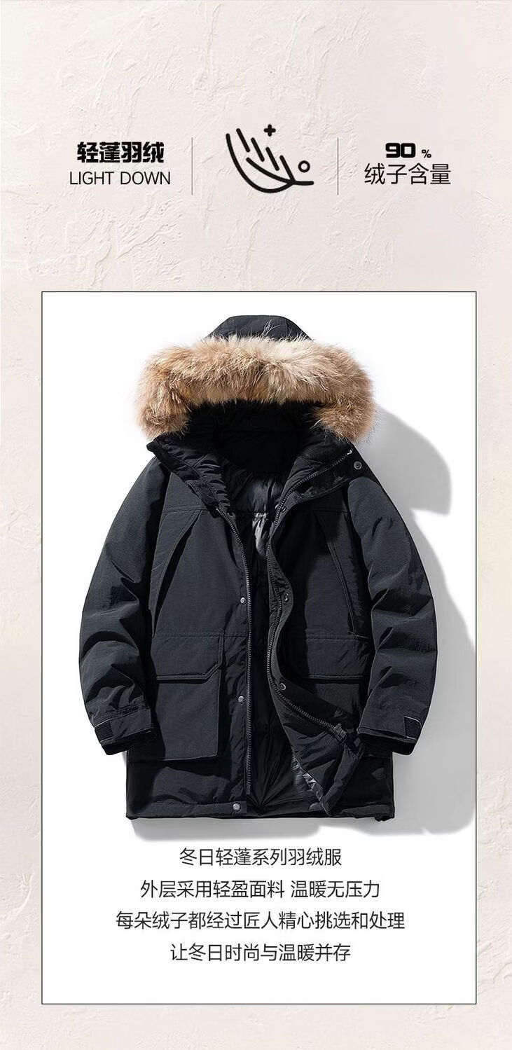 PANMAX Winter Down Jacket Youth Mid-Length New Hooded Fur Collar Warm Fashionable Jacket Thickened Men Blue S Recommended 80-105 Jin Jin equals 0.5 kg