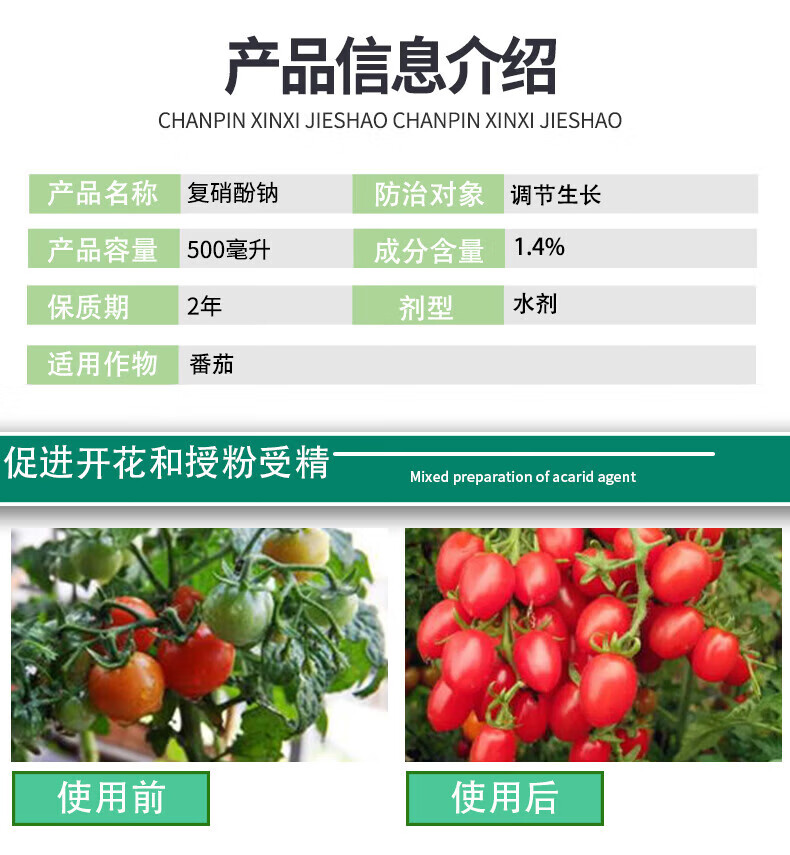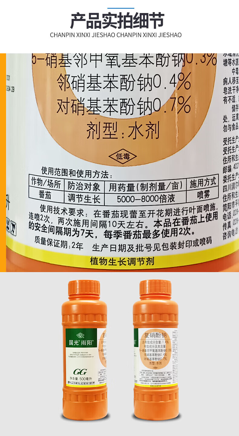 Guoguang Yuyang 1.4% sodium nitrophenolate to promote root growth, preserve flowers and fruits, vegetable tomatoes, plant growth regulator 500ml