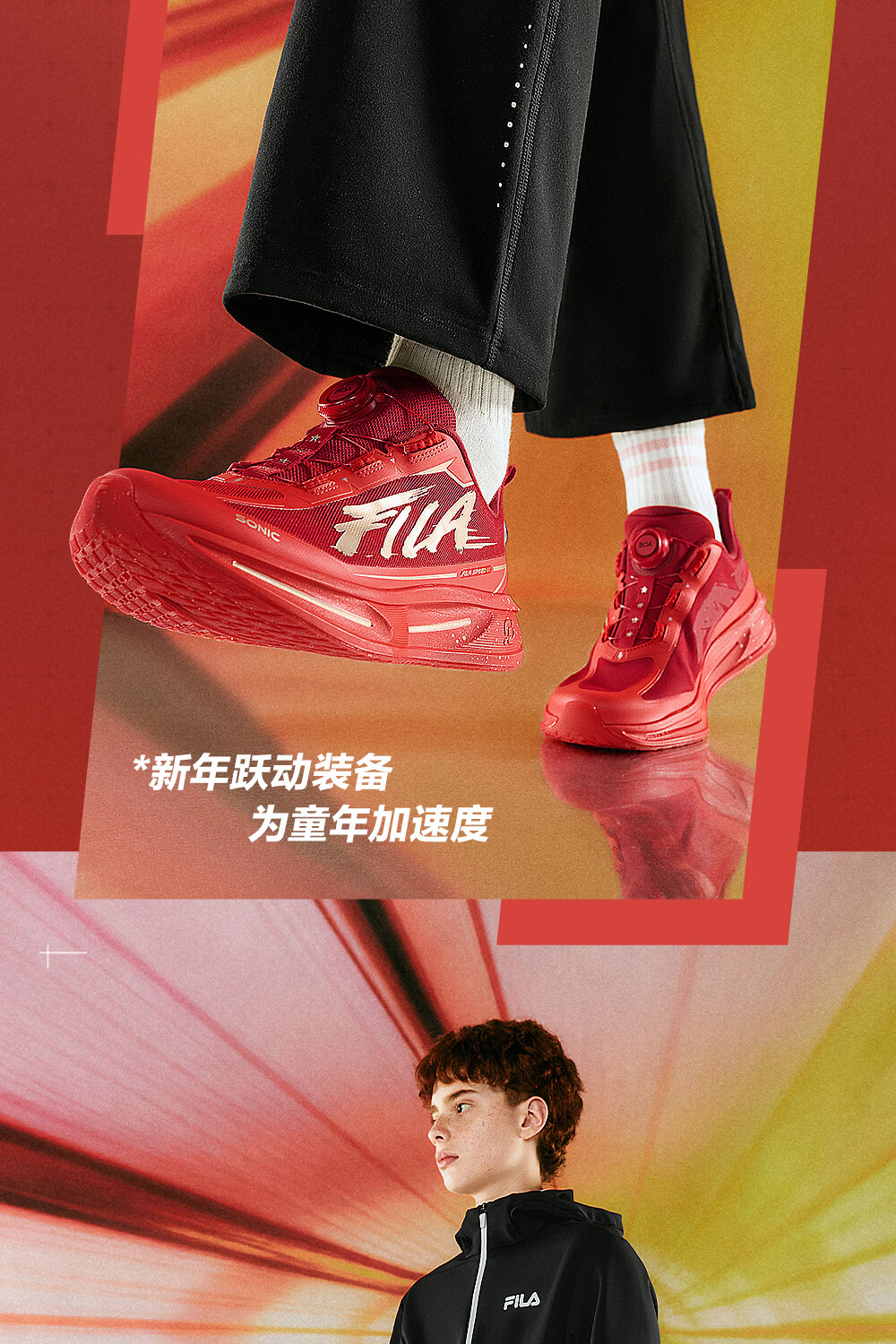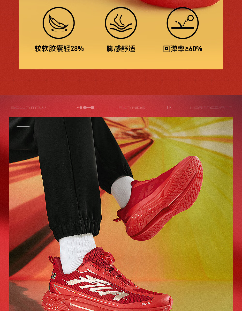 FILA Children's Shoes Running Shoes 2026 Spring New Year Men's and Large Children's Sports Shoes Super Running 6 Dark Red/Fiery Red-FH 33 Inner Length 20.5cm