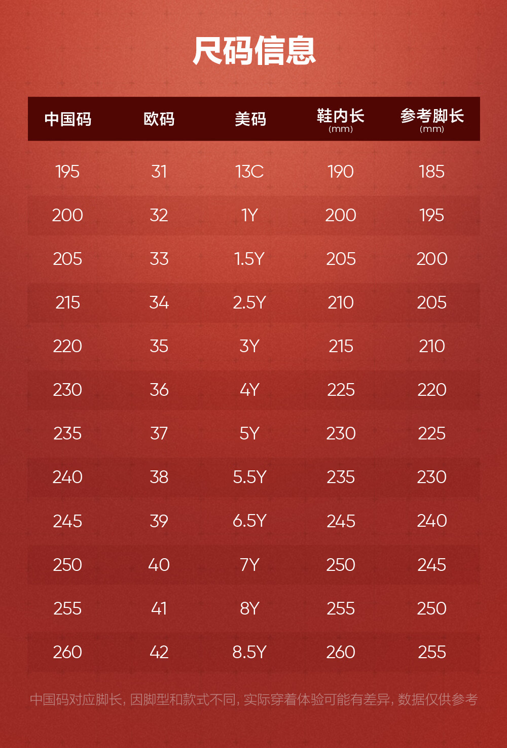 China (cm) 165 / 88-90 170 / 96-98 175 / 108-110 180 / 118-122 185 / 126-130