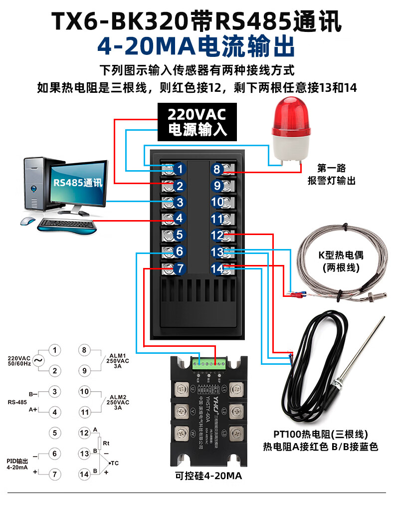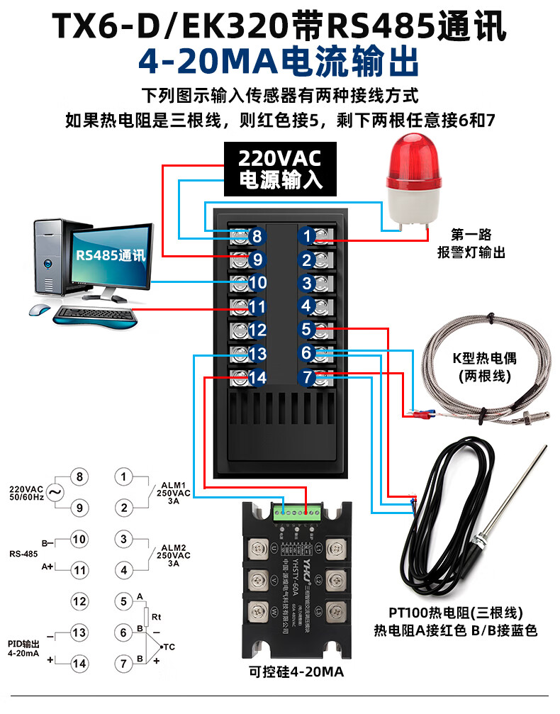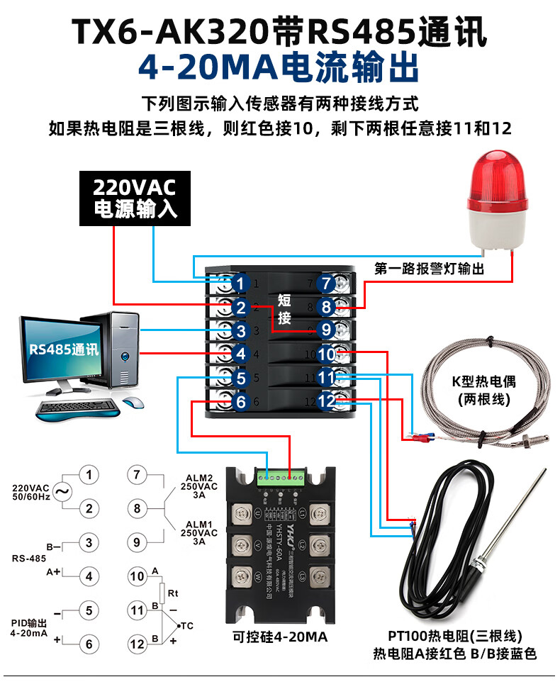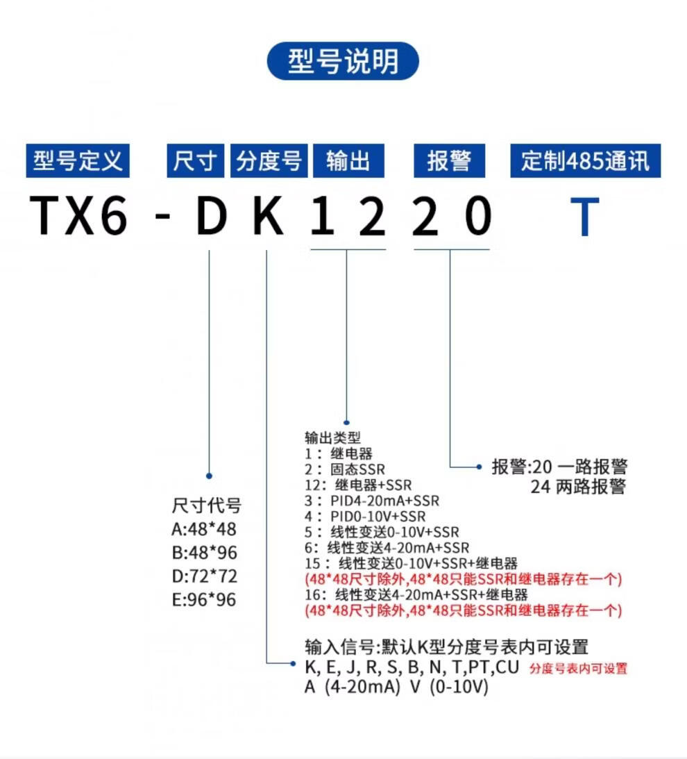Intelligent thermostat PID digital display fully automatic temperature controller with RS485 communication temperature controller 4-20mA TX6-DK1220_72*72