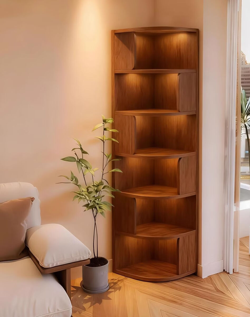 Fantasy corner bookshelf living room corner storage rack integrated wall-to-wall floor-standing corner bookcase vertical storage locker lotus white x 5 layers 150cm practical, stable, durable and long-lasting
