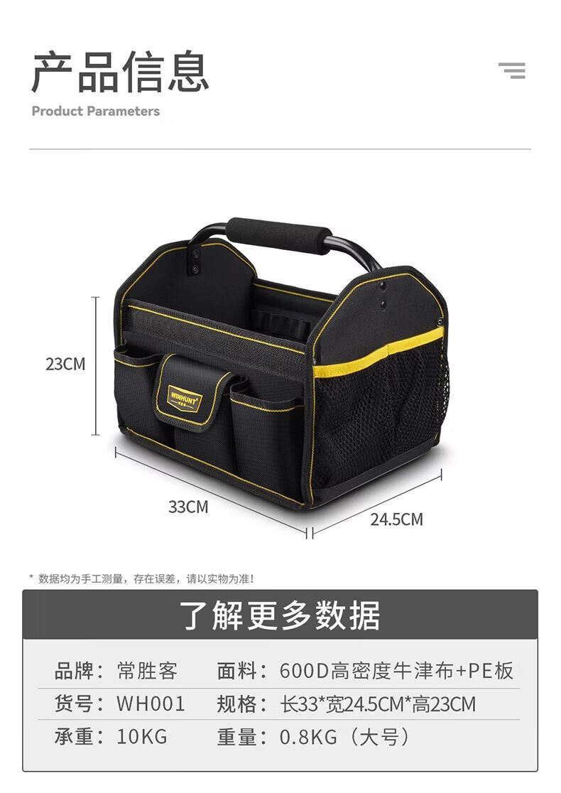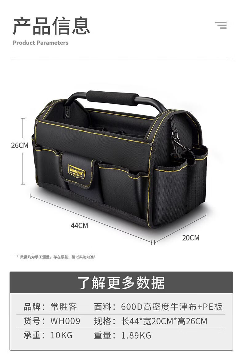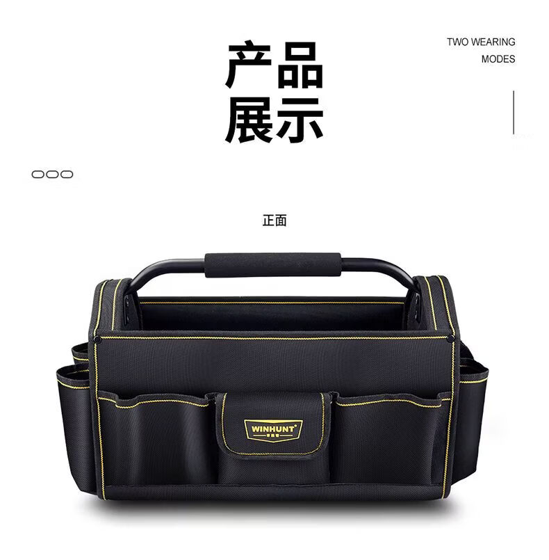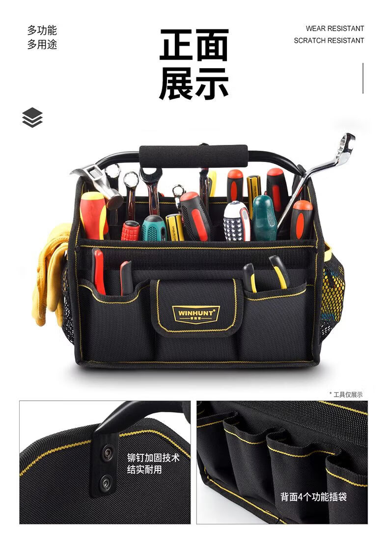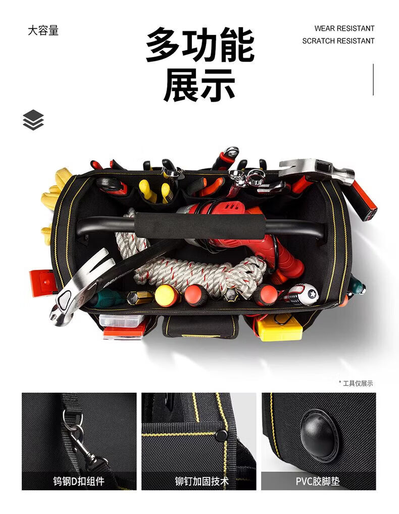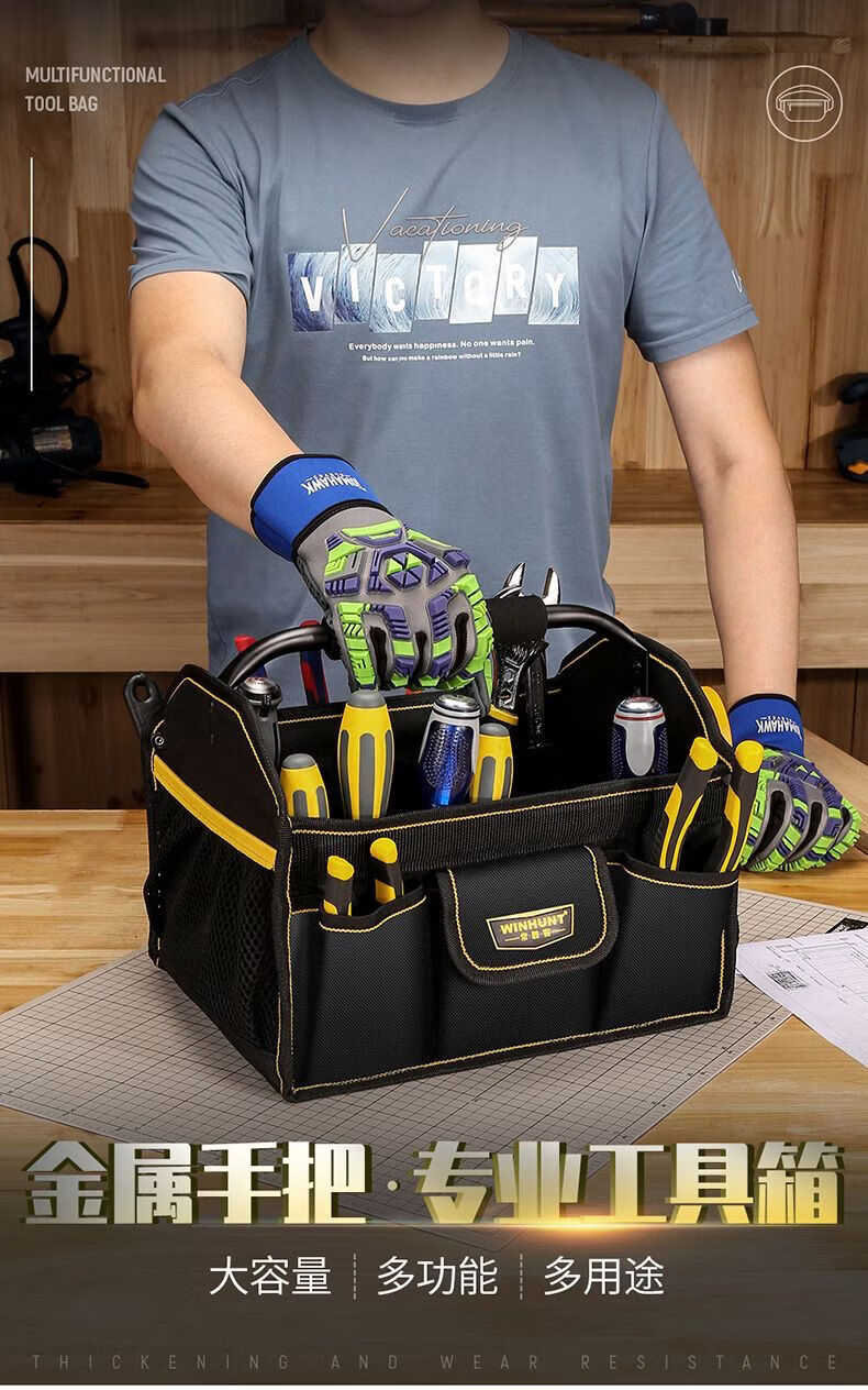 Vinoa Large Capacity Thickened Construction Site Maintenance Tool Bag Steel Pipe Handle Multifunctional Oxford Cloth Shoulder Outer Portable Tool Basket Medium Size A