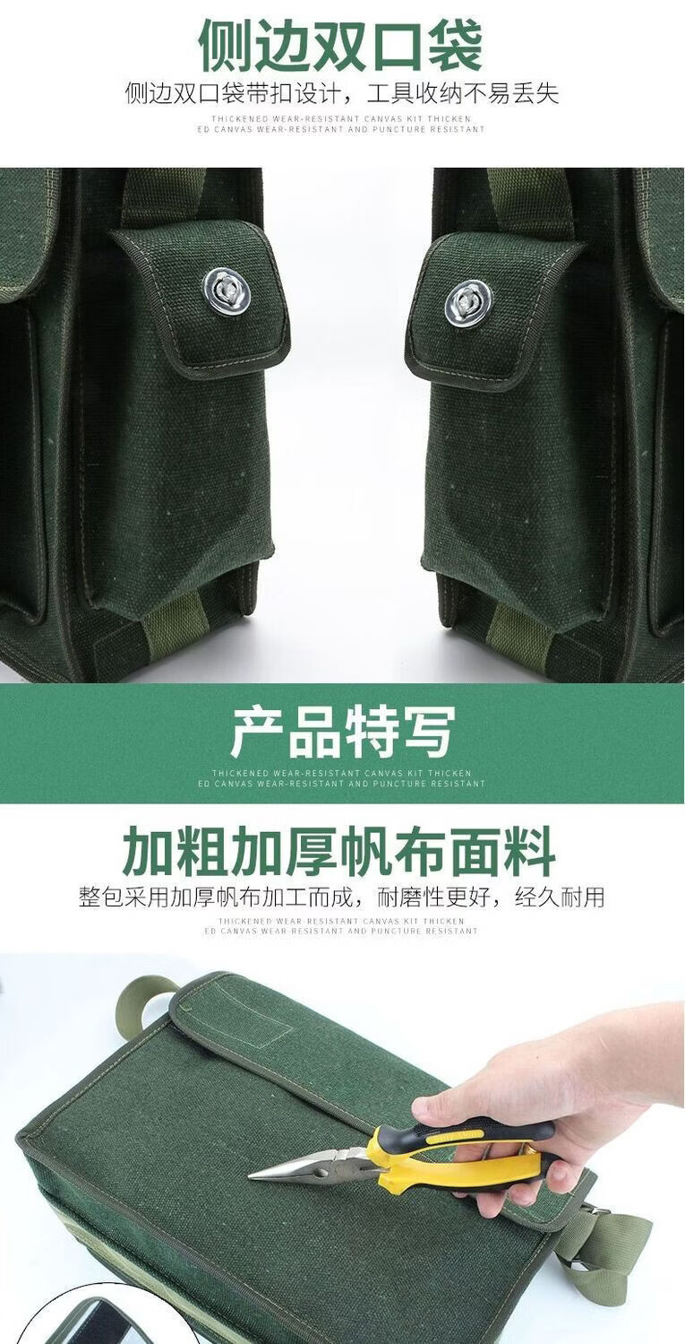 Meikejie Electrician's Bag Large Thick Canvas Shoulder Crossbody Tool Bag Sturdy Multifunctional Hardware Repair Kit Small Promotional Style - 03 Model 40CM Large Single Layer Yellow Edge Bag