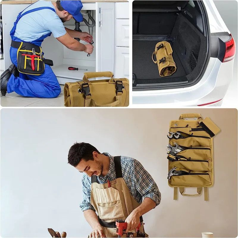 Vinoa Multifunctional Tool Bag Tool Canvas Bag Electrician Repair Hardware Tools Portable Storage Storage Bag Car Black Roll Electrician Bag