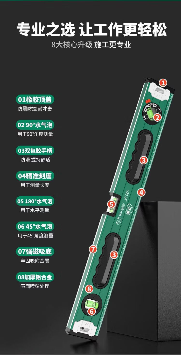 Yina high-precision flat water ruler magnetic aluminum alloy mini level decoration measurement level balance ruler ruler G20 strong magnetic - flagship 30cm level ruler (with cloth bag)