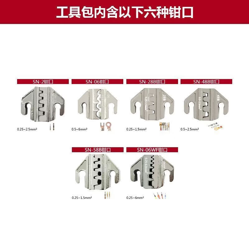 Qinkai SN-B ratchet spring terminal crimping pliers cold-pressed terminal set wiring pliers power terminal pliers tool kit SN spring car special pliers 0.25-1.5 flat