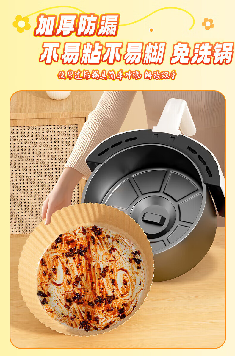 Special paper baking pan for rice air fryer, oil-absorbing paper pad, household food silicone paper, tinfoil bowl, baking pot, frying, thickened large, round 50 sheets + pet dust box (3-5 liter fryer