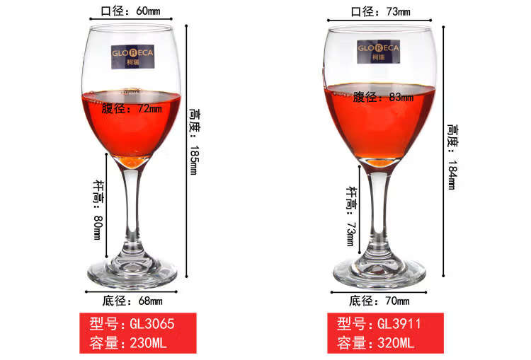 Yusen Yi Ke Rui classic red wine glass 6-pack household glass wine glass goblet juice glass wine glass GL3911/320ML 6-pack