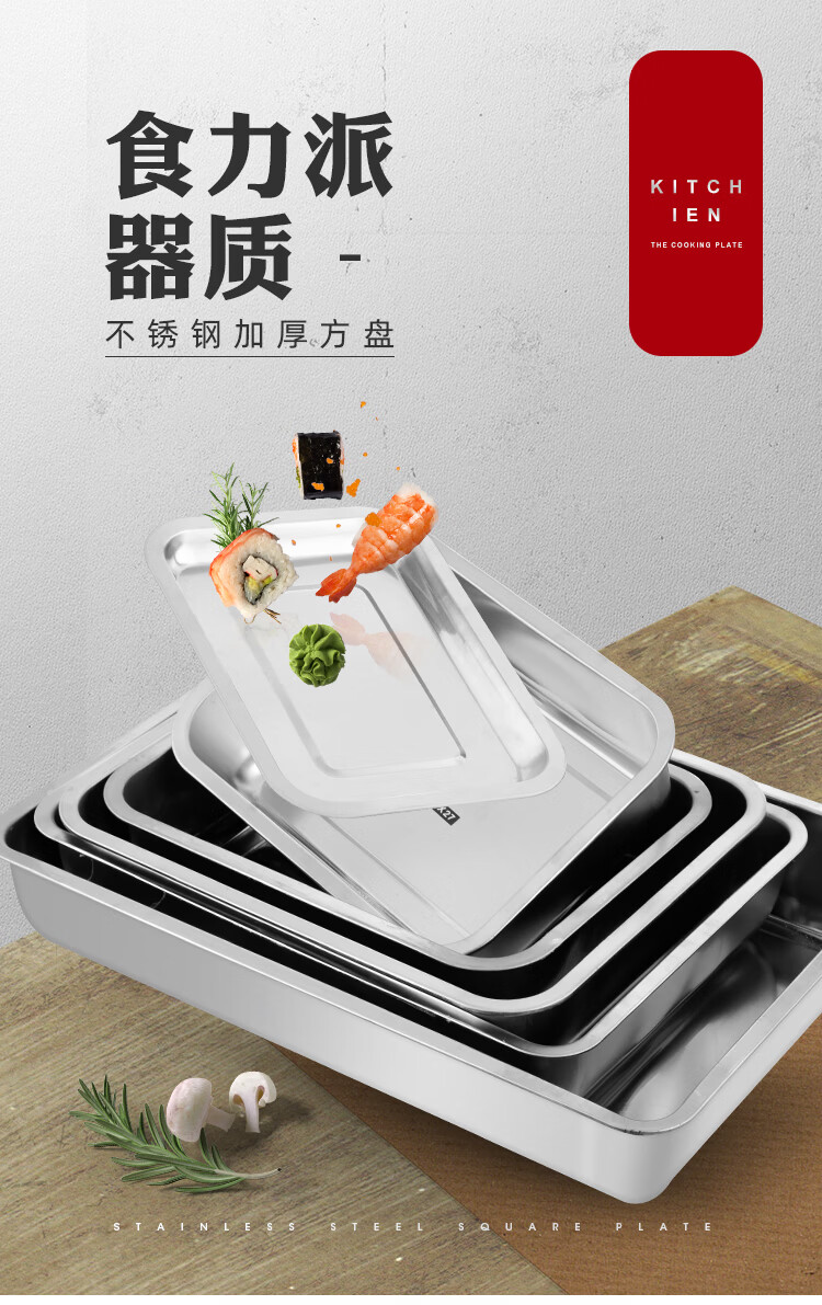 Tuojin Germany imported high-quality stainless steel plate tray rectangular cold dish plate dinner plate grilled fish plate home extra thick 70*50*2 shallow plate
