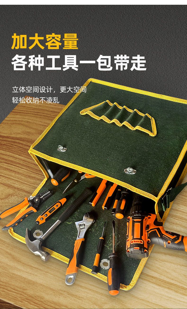 Veribin Electrician's Tool Bag Waterproof Shoulder Bag Repair Kit Hardware Labor Protection Construction Site Bag Crossbody Bag Double-layer Canvas Bag Thickened丨Precision Weaving丨Long-term Use Will Not Be Destroyed and Replaced with a New Medium Electrician's Bag