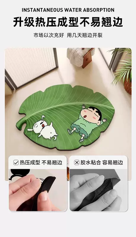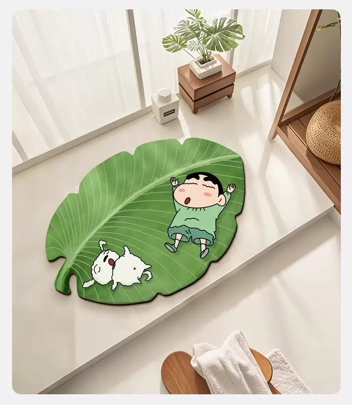 Yusenyi shower room entrance bathroom crayon water floor mat banana leaf diatom mud absorbent small new foot mat absorbs bathroom carpet banana style puppy 6090cm (easy to clean, wear-resistant and stain-resistant)