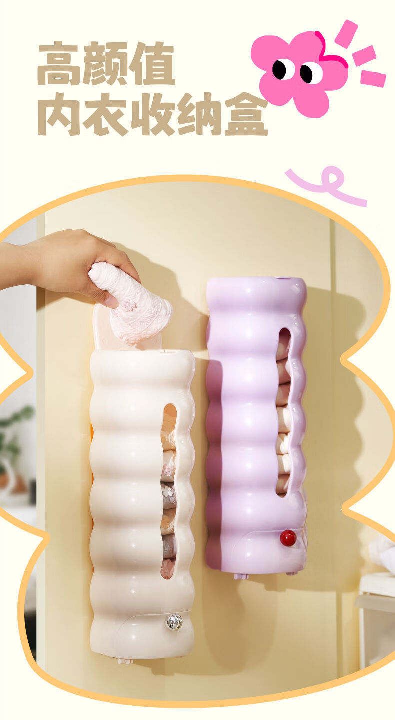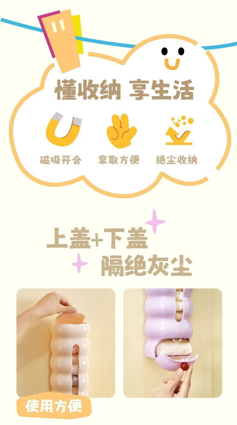 Paoyan original magnetic opening lid underwear storage box wall-mounted bedroom punch-free dustproof socks underwear storage box cream color