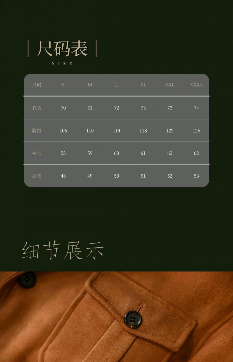 China (cm) 165 / 88-90 170 / 96-98 175 / 108-110 180 / 118-122 185 / 126-130