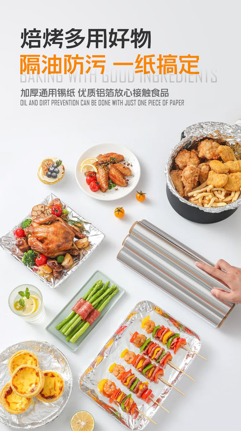 Fat Donglai's same air fryer special paper tin foil oven household air fryer special aluminum foil supplier 100 meters thick 20 microns wide 45 cm extra wide and thickened