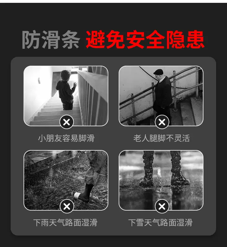 Yusenyi Stairs anti-slip and snowy outdoor slope adhesive mat self-tiled step special step anti-slip mat outdoor anti-slip straight gray 40mm wide x 1 meter long (1 roll)