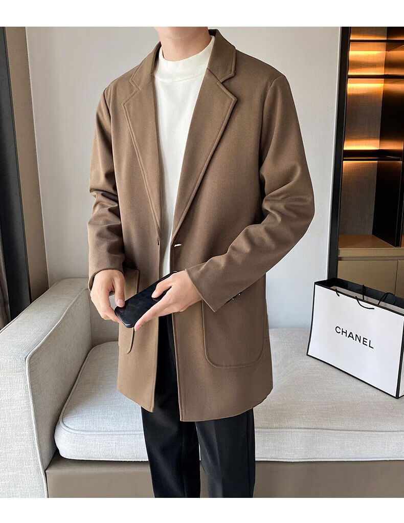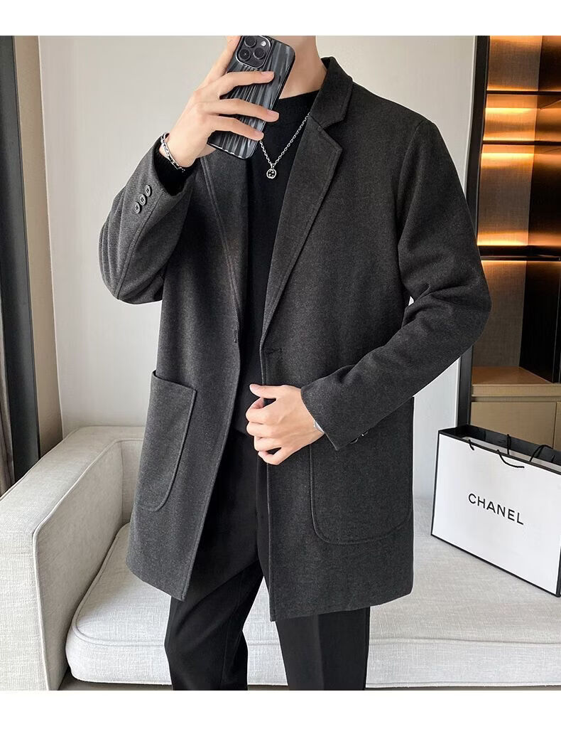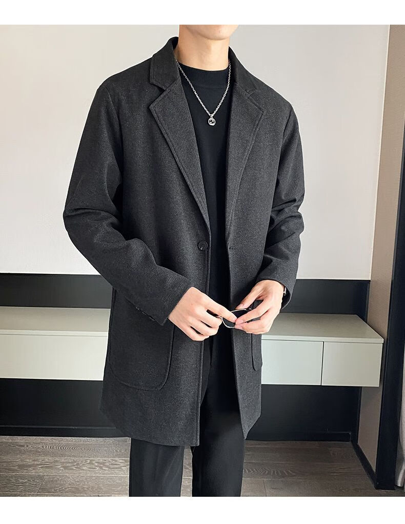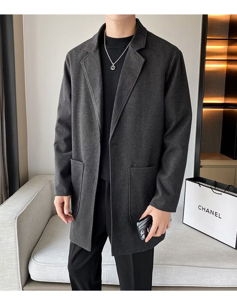Baleno S&K series woolen coat, autumn and winter men's mid-length windbreaker, casual trendy business suit, gray jacket S