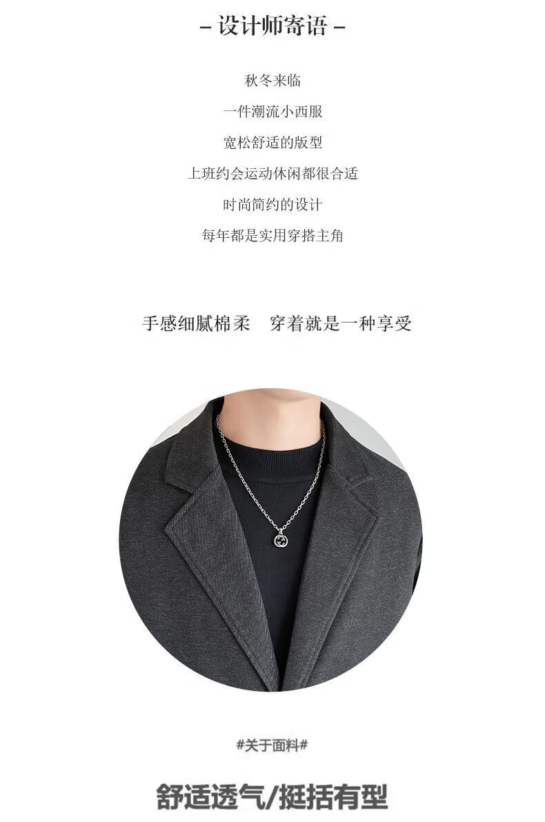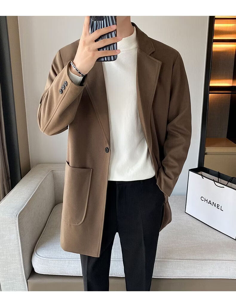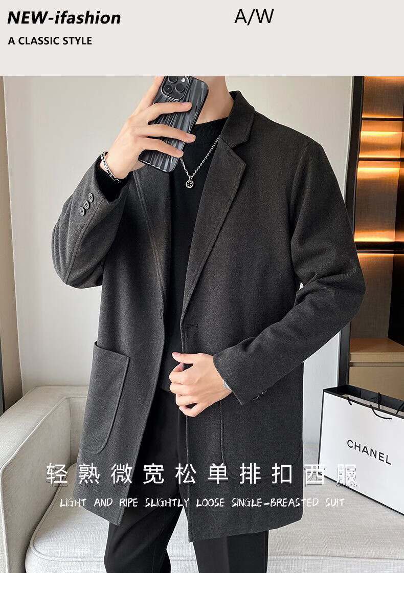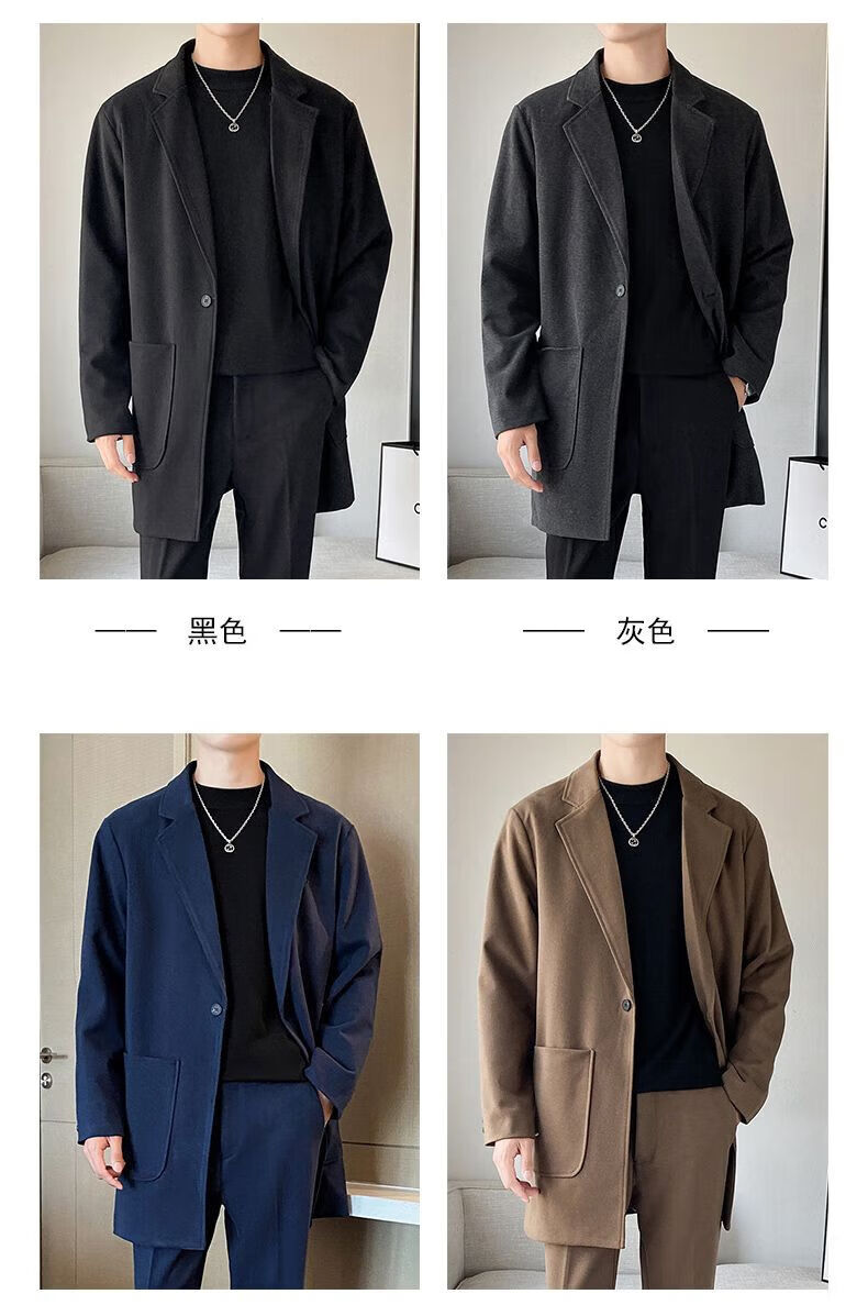 Baleno S&K series woolen coat, autumn and winter men's mid-length windbreaker, casual trendy business suit, gray jacket S
