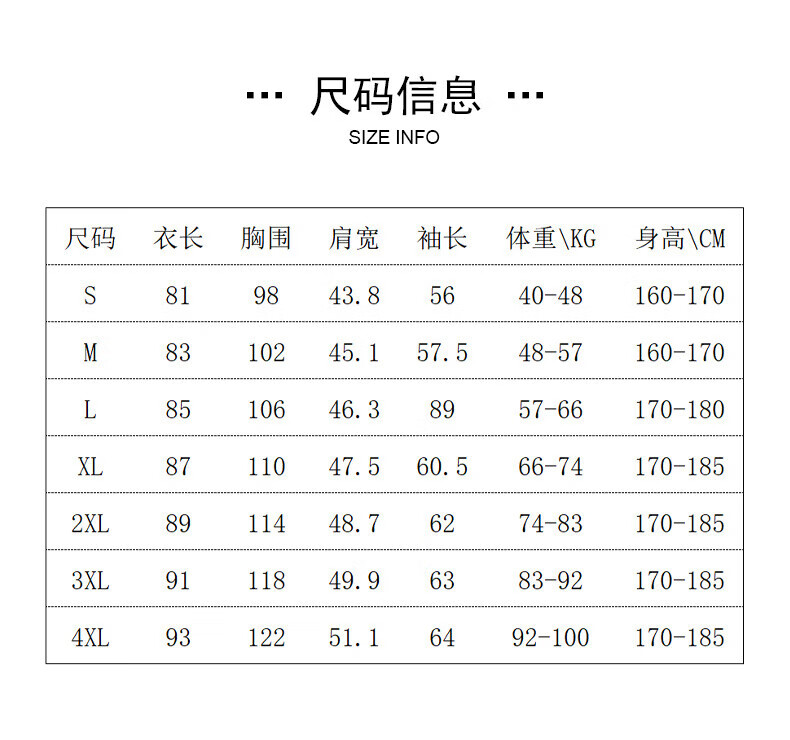 China(cm) 72-76 76-81 81-87 87-93 93-98