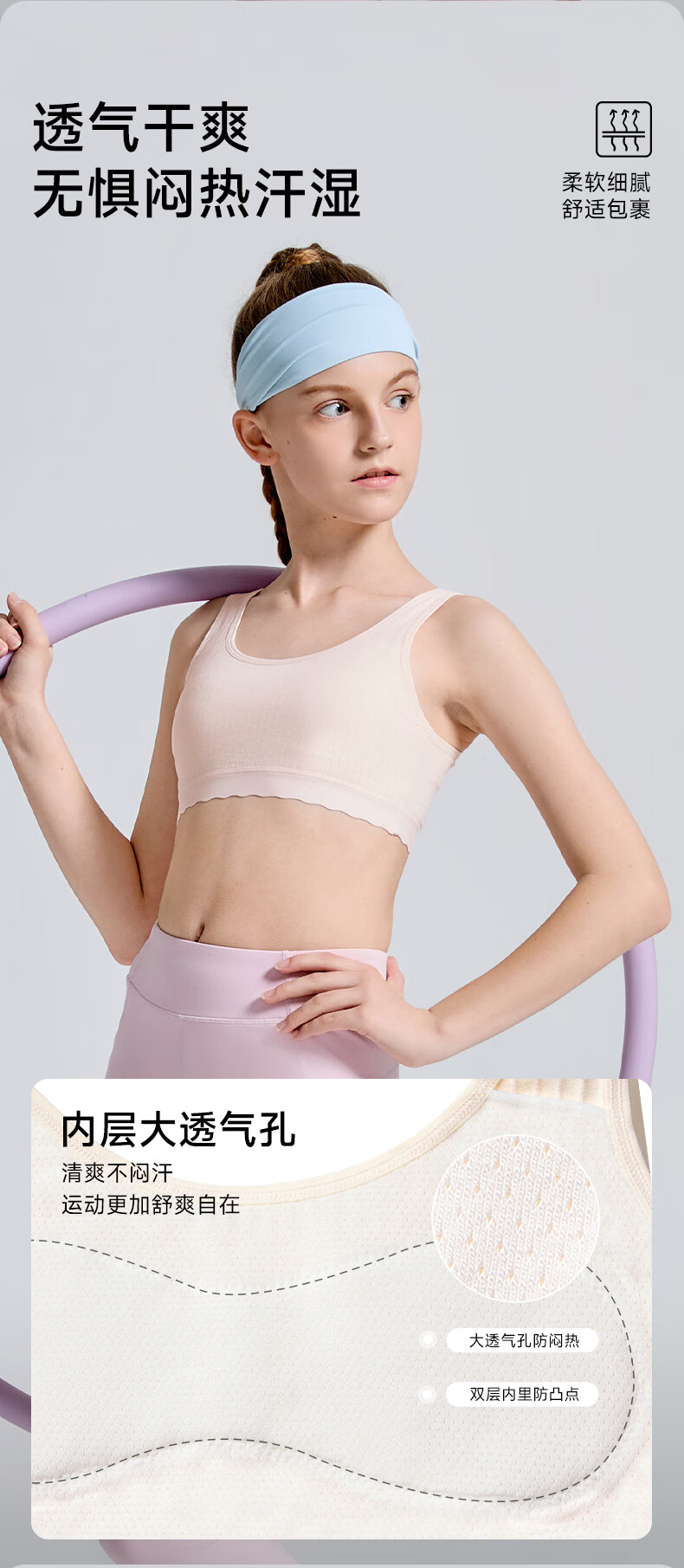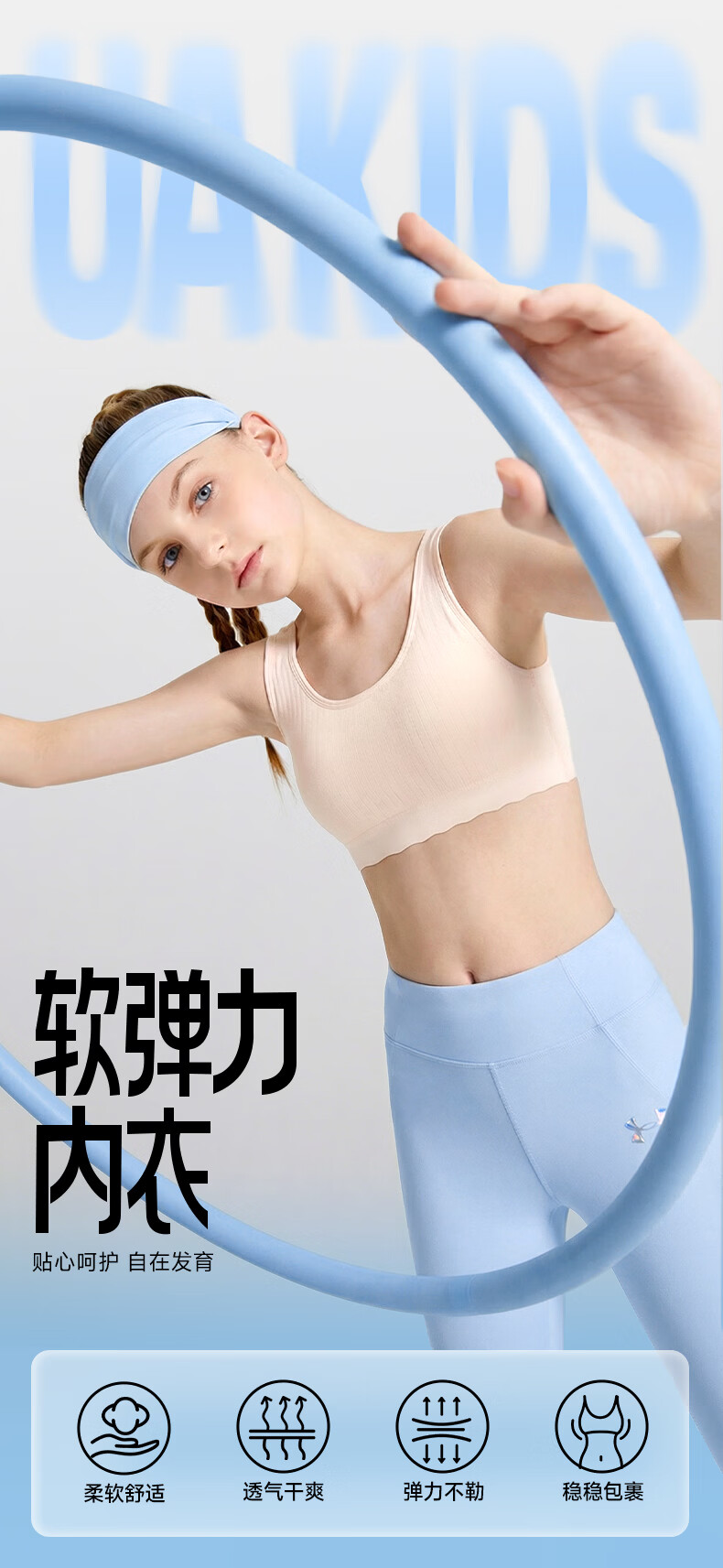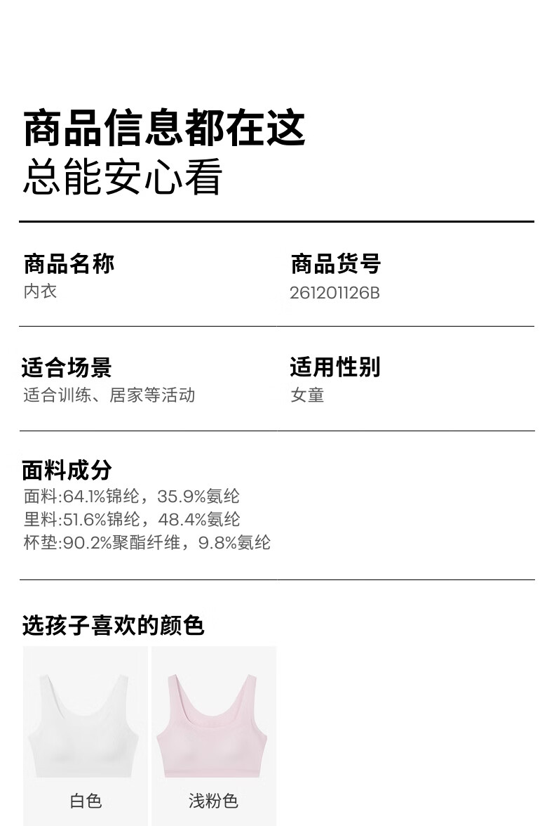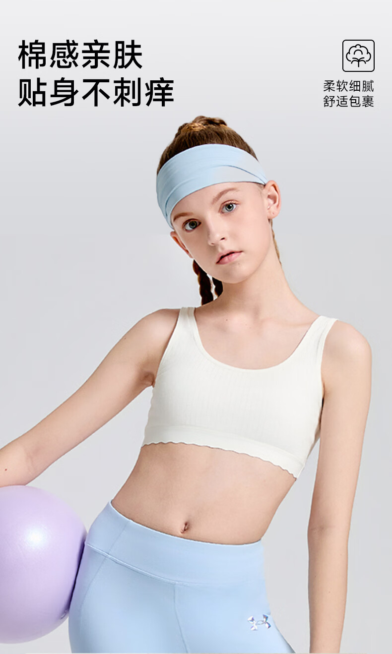 Under Armor girls' underwear, student development period, sports seamless underwear, breathable girls' soft all-in-one bra 261201126A white second level 160