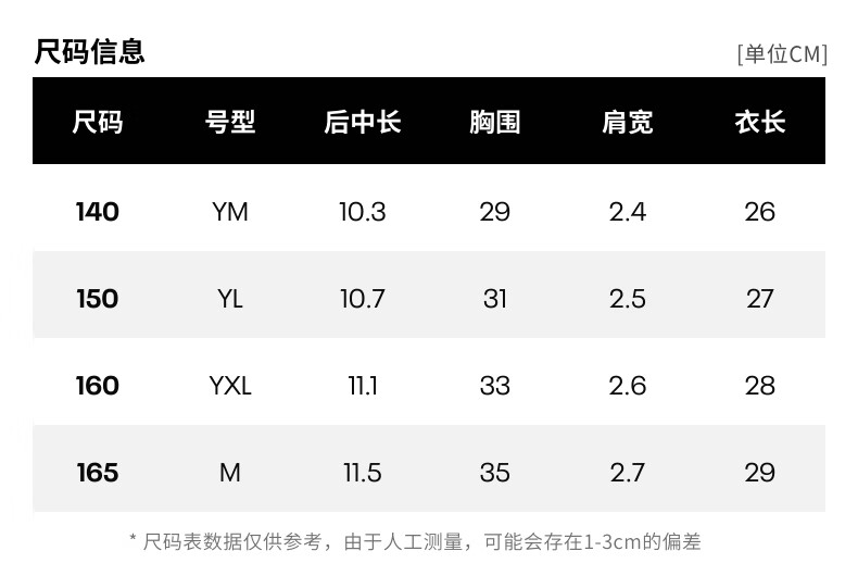 China (cm) 160-165/84-86 165-170 / 88-90 167-172 / 92-96 168-173 / 98-102 170-176 / 106-110