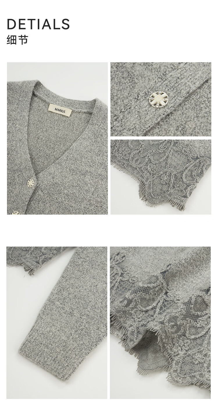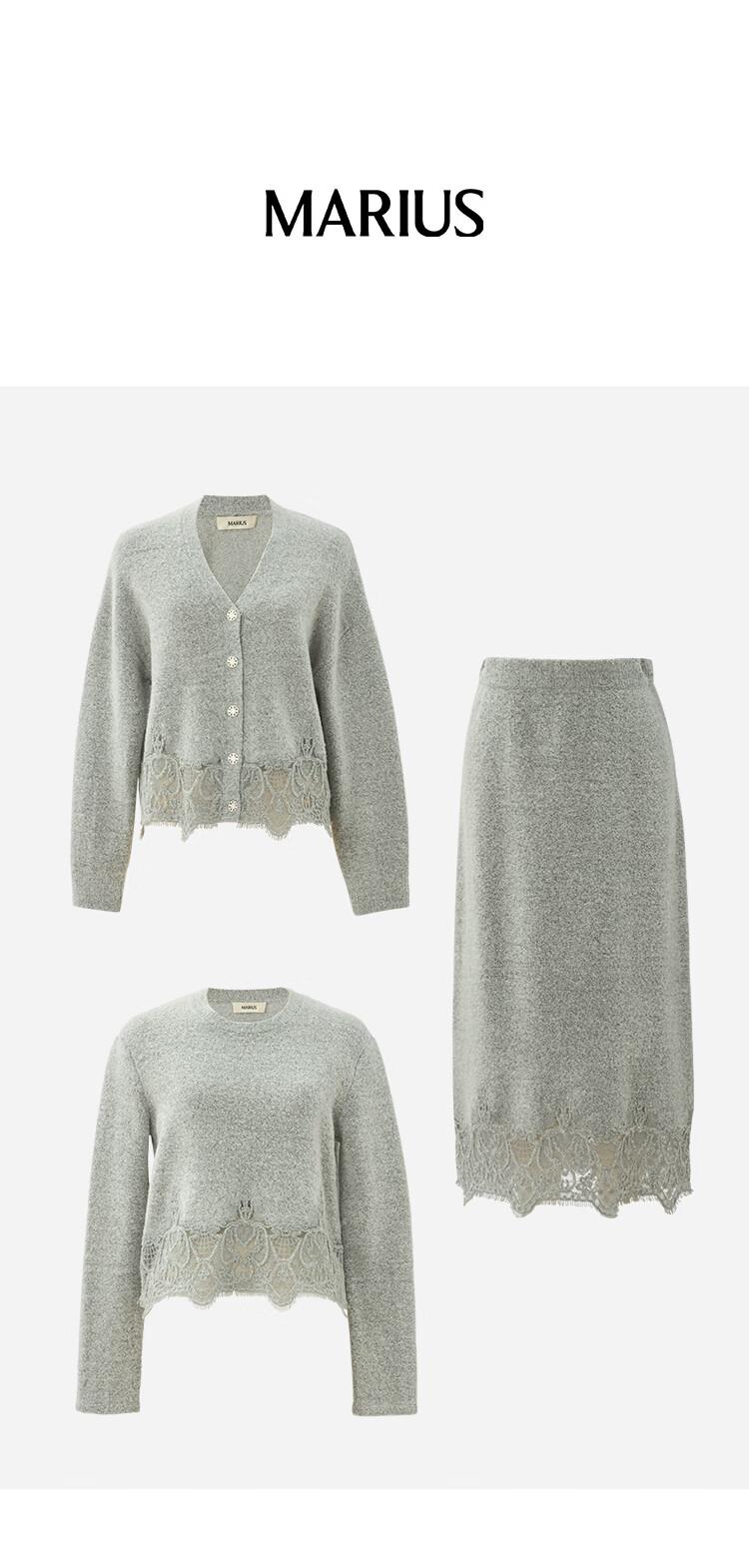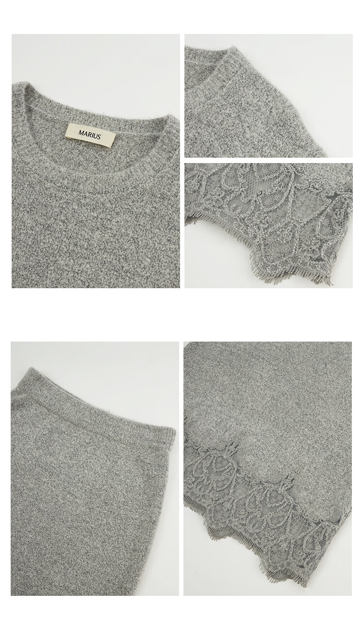 MARIUS | Warm fireplace wool blend loose lace splicing crew neck knitted pullover/skirt Hepburn black pullover L