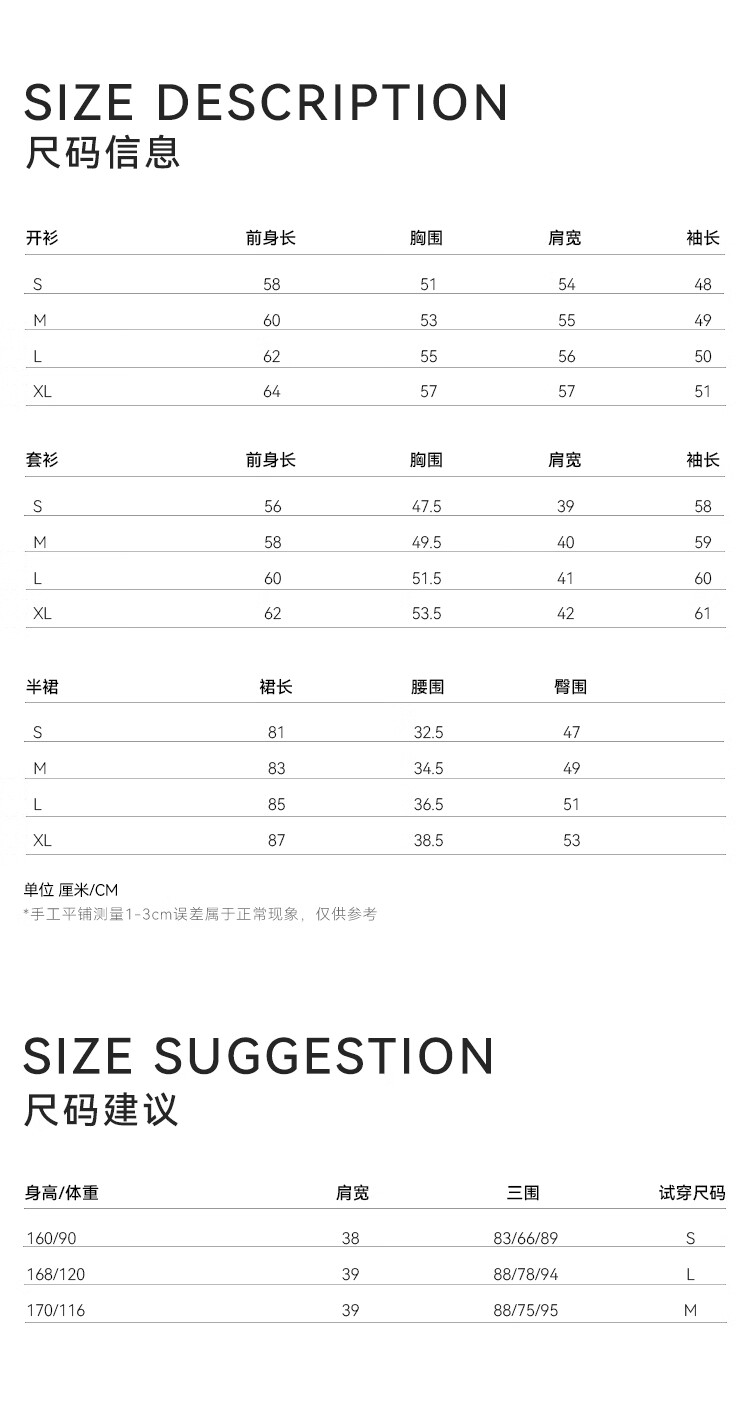 China (cm) 160-165/84-86 165-170 / 88-90 167-172 / 92-96 168-173 / 98-102 170-176 / 106-110