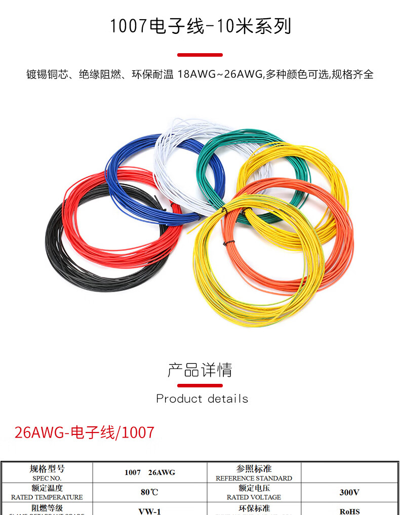 YourCee Electronic Wire 1007 18-26AWG Red Black Yellow Blue White Green Orange Yellow Green American Standard Wire Electronic Wire 10 Meters Electronic Wire/1007-18A Black (1 Roll/10 Meters)