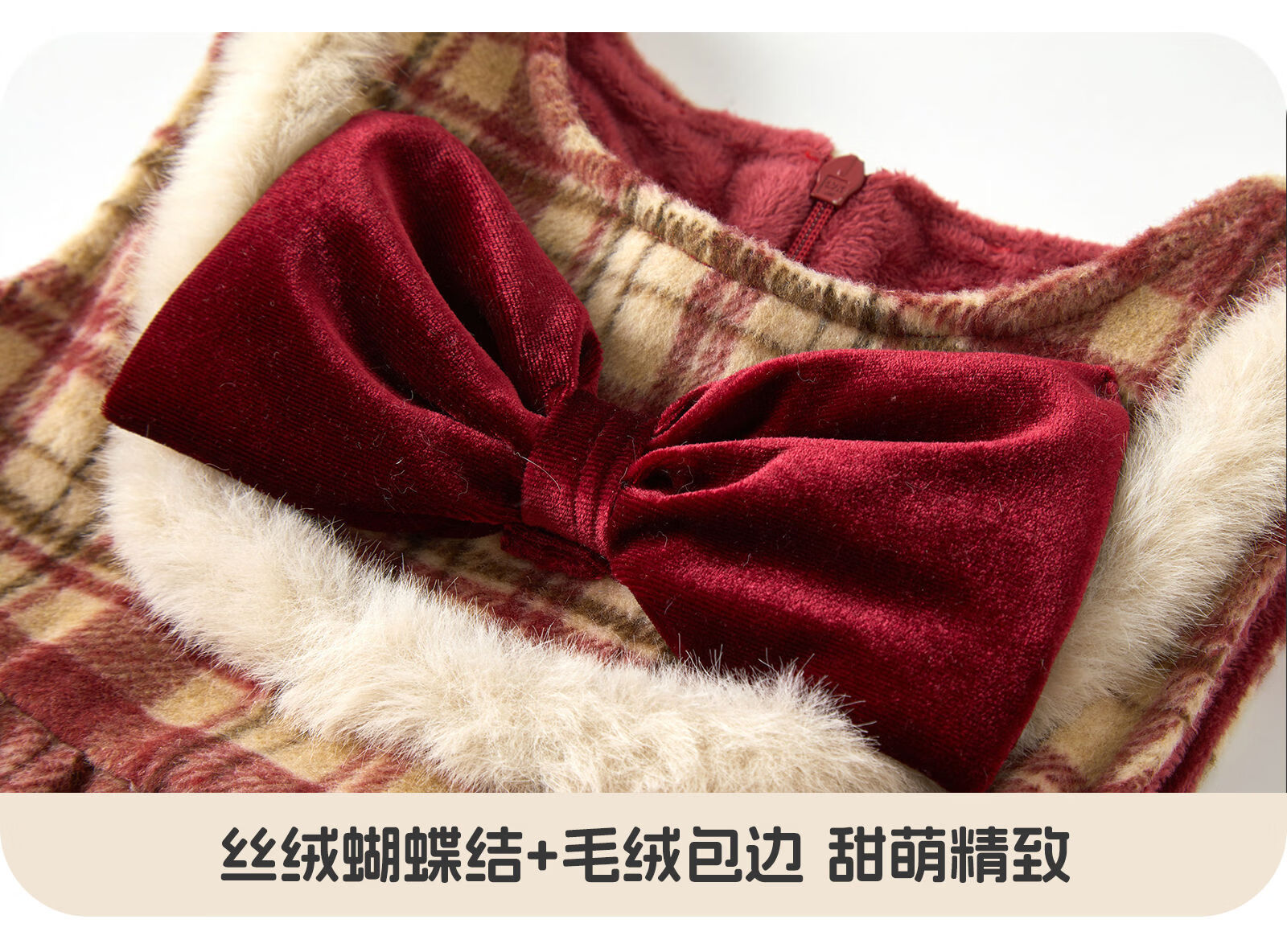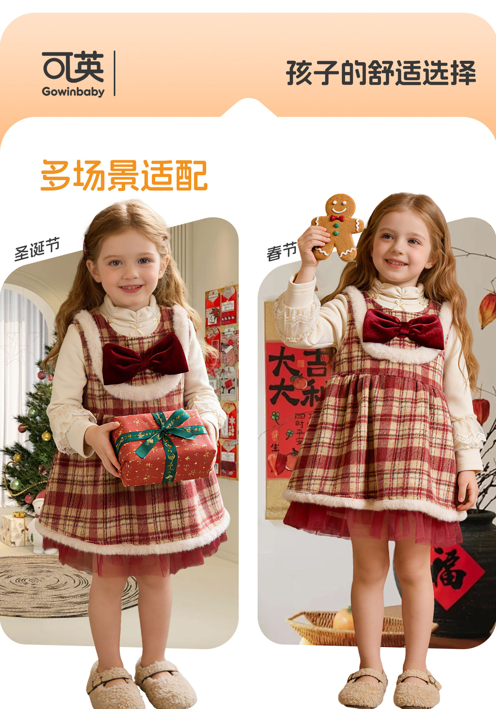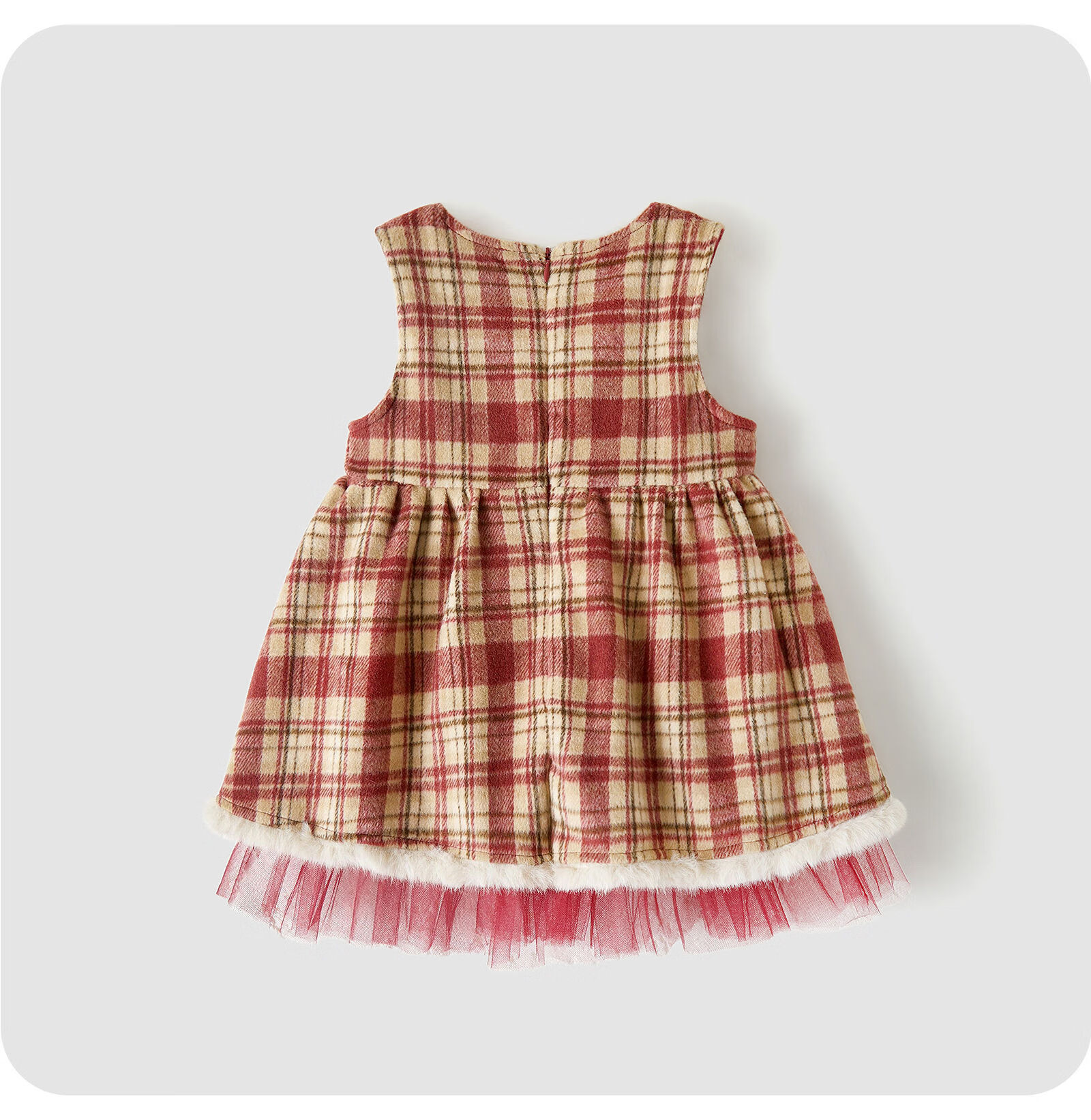 Keying GOWINBABY children's clothing girls New Year clothes gifts 2025 winter girls vest skirt plaid baby girl New Year's greetings dress sweet and thick plaid vest skirt 90 (suitable for height 80cm-90cm)