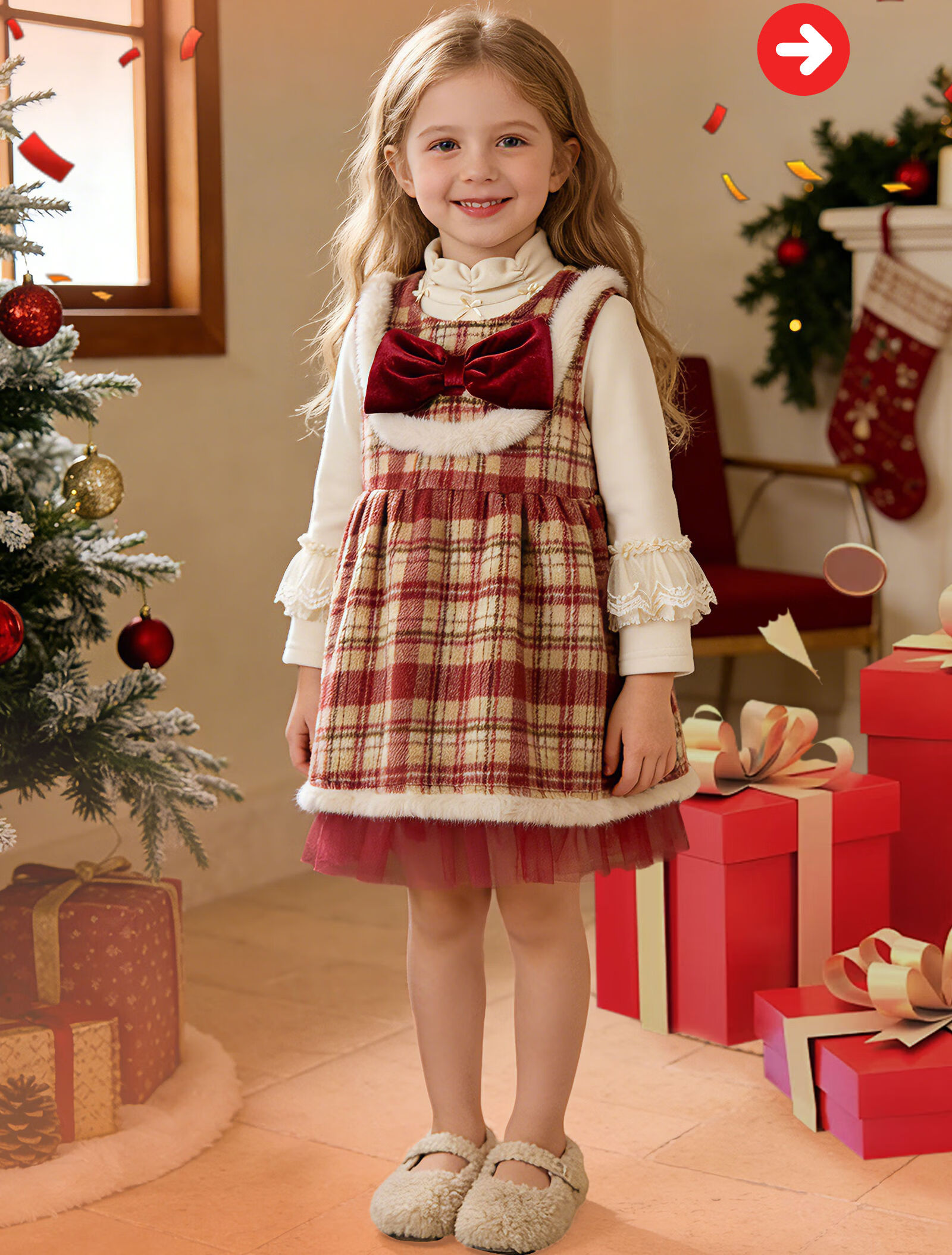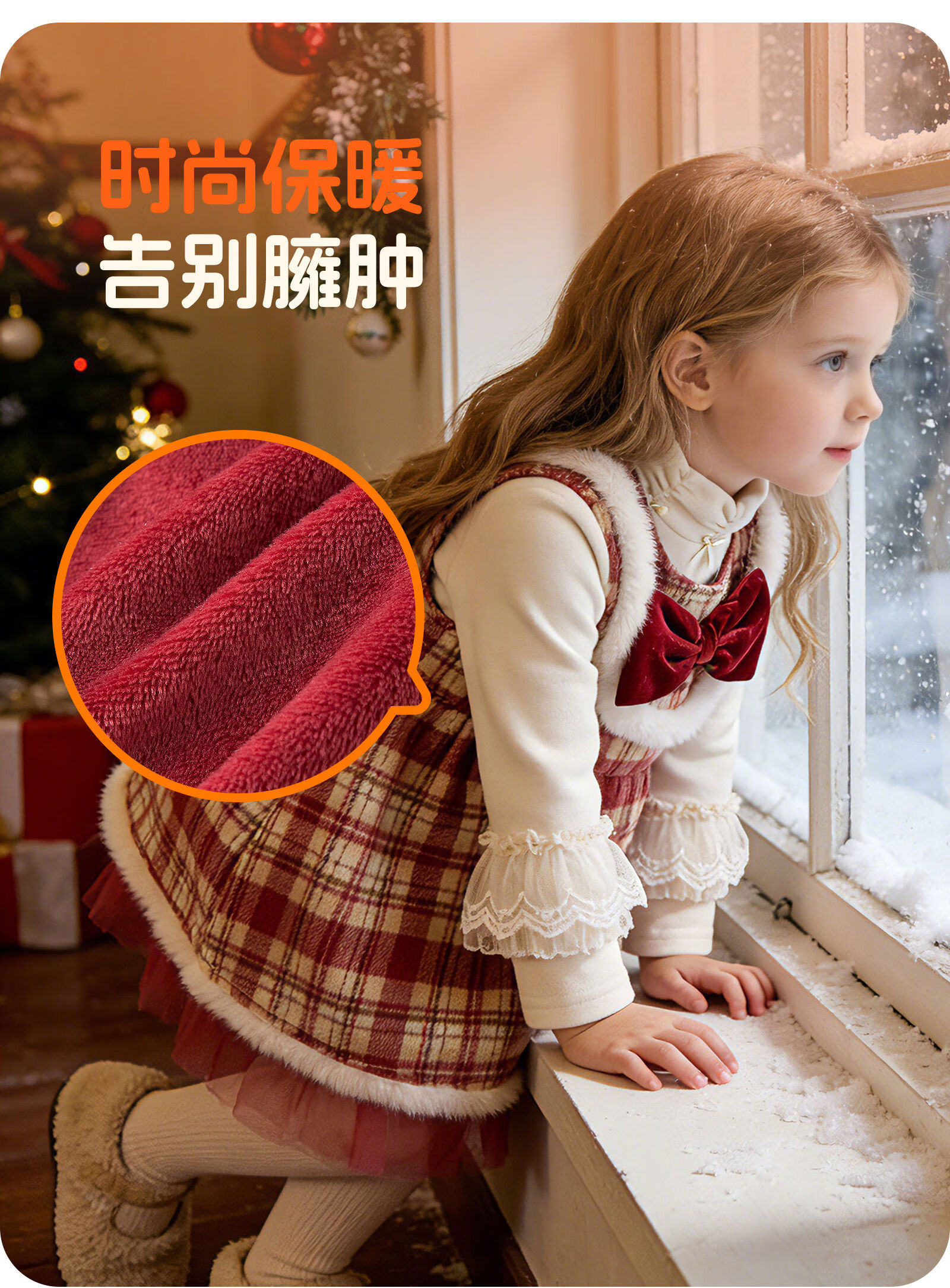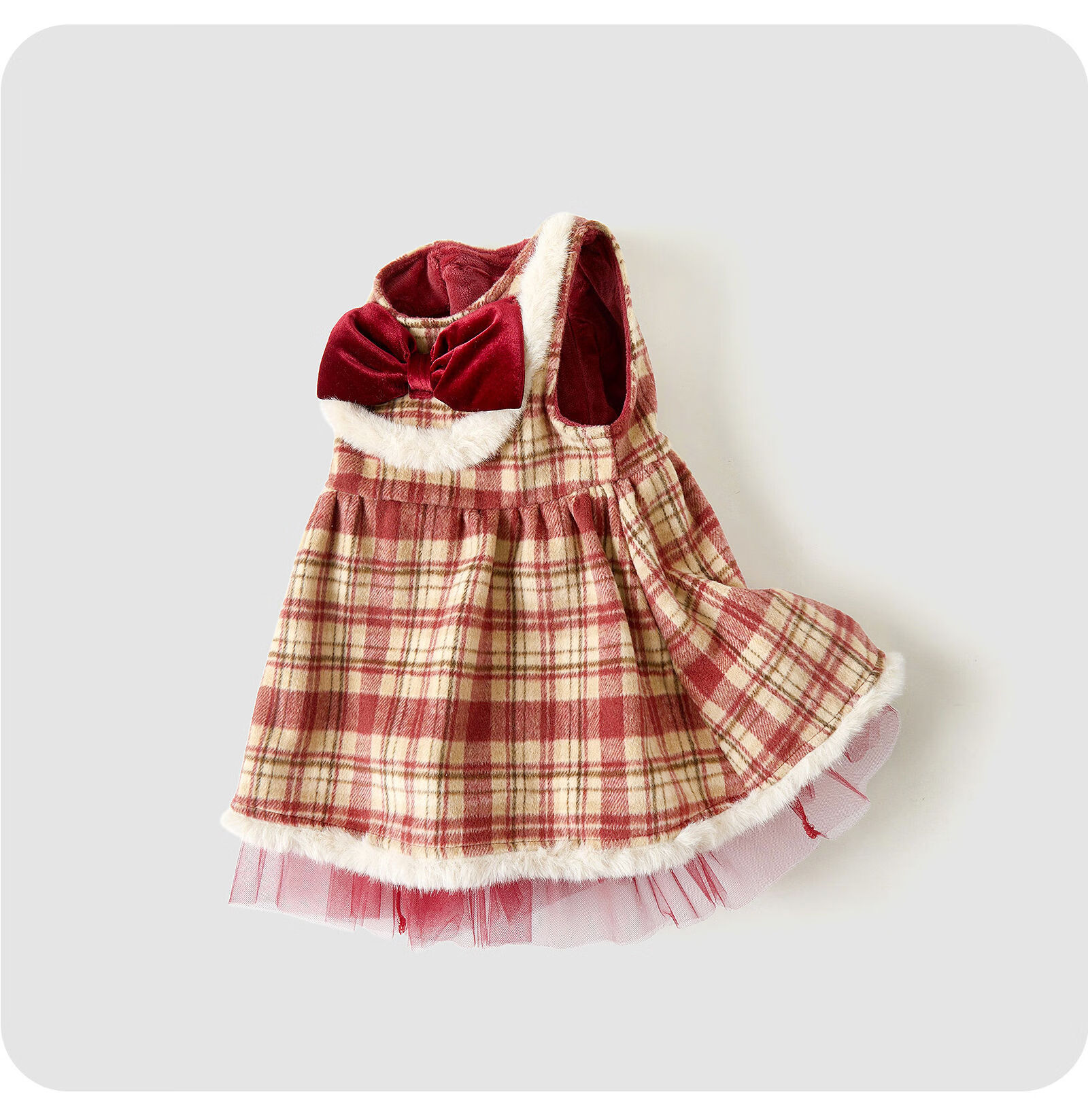 Keying GOWINBABY children's clothing girls New Year clothes gifts 2025 winter girls vest skirt plaid baby girl New Year's greetings dress sweet and thick plaid vest skirt 90 (suitable for height 80cm-90cm)