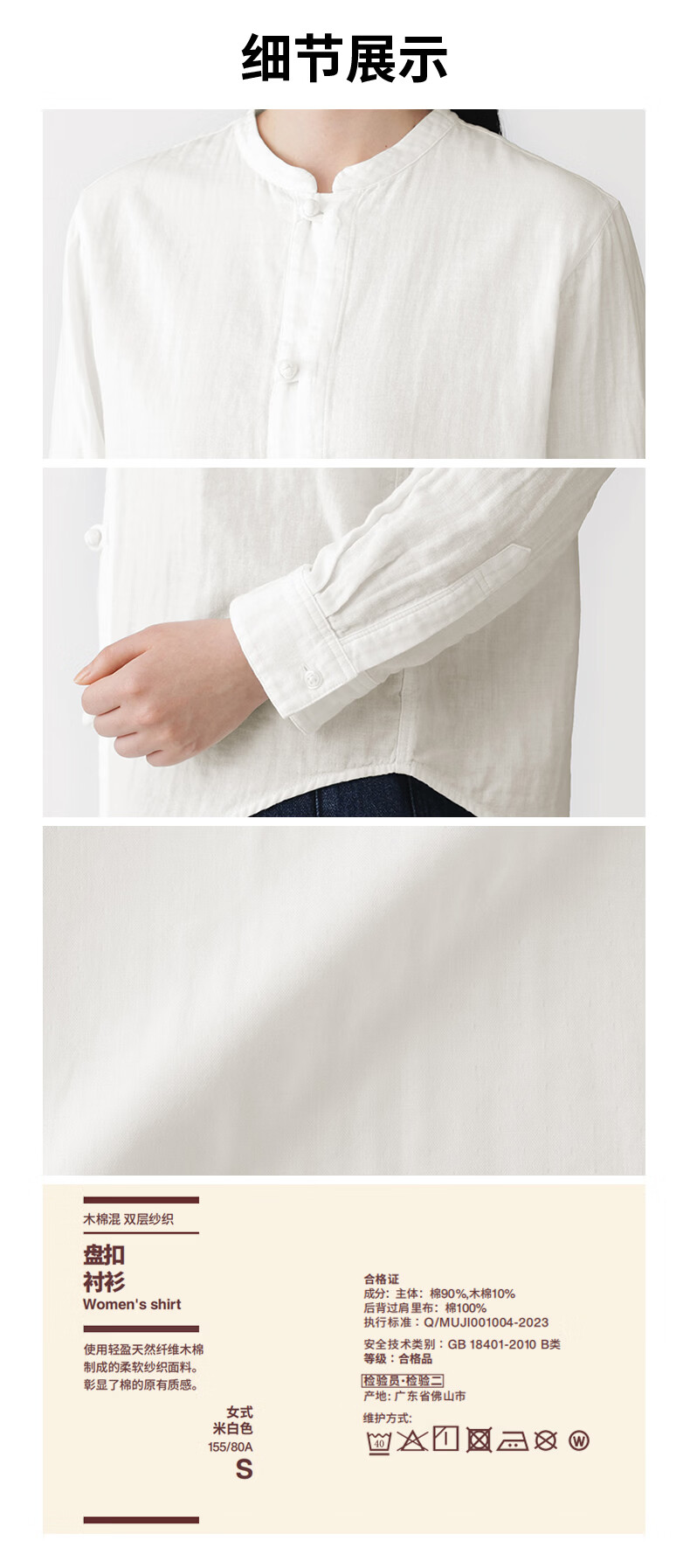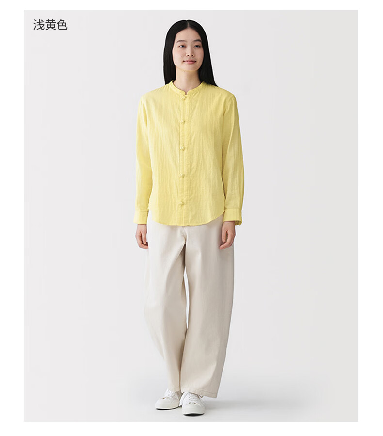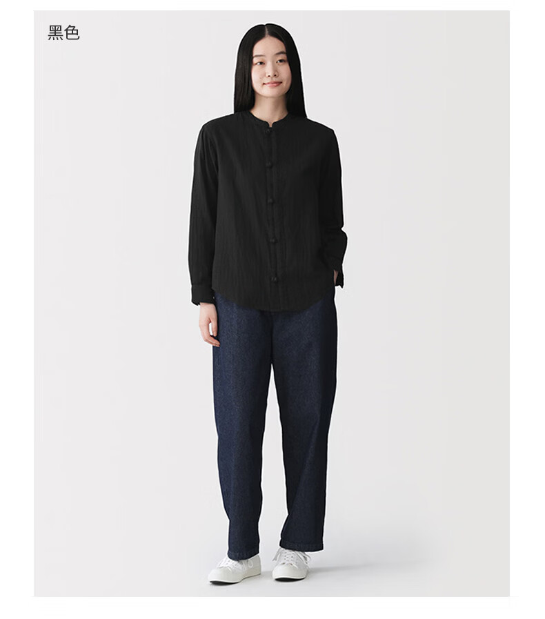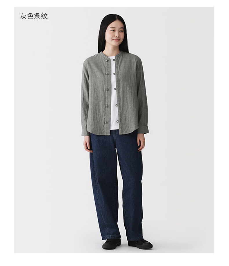 MUJI Women's Kapok Mixed Double-layer Yarn Disc Button Shirt Women's Shirt Jacket Spring 26 Women's BC2R7A6S Gray Stripe L (165/88A)