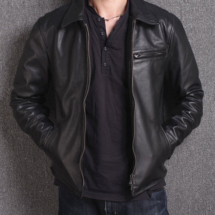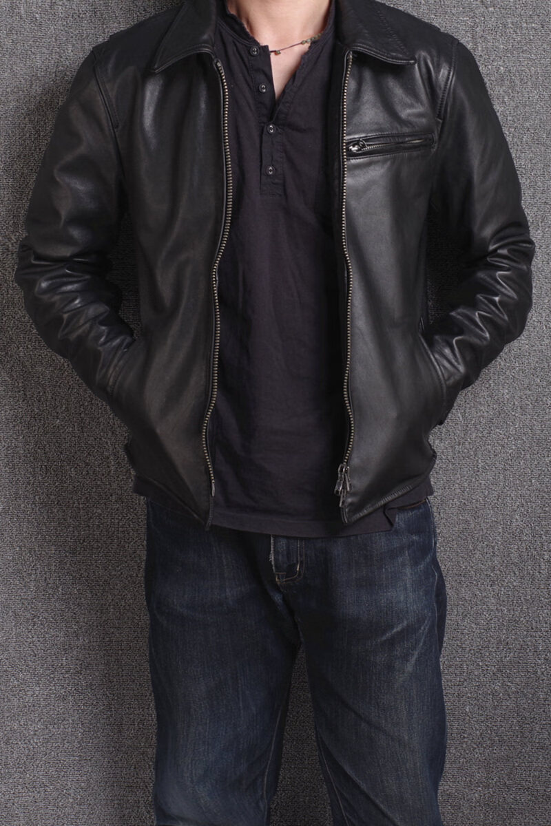 Playboy Men's Leather Jacket Men's Autumn and Winter New Style Handsome Trendy Casual Versatile Lapel Motorcycle Wallet Black M