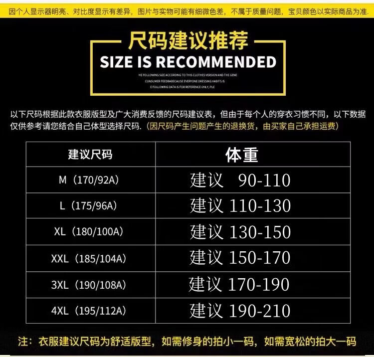 China (cm) 165 / 88-90 170 / 96-98 175 / 108-110 180 / 118-122 185 / 126-130