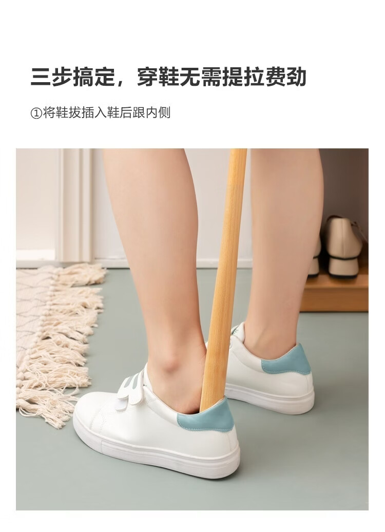 Yusenyi shoe-wearing artifact shoehorn, bamboo solid wood extended shoehorn, long handle, convenient shoe-wearing device, shoe-wearing tool for the elderly, 2 pieces