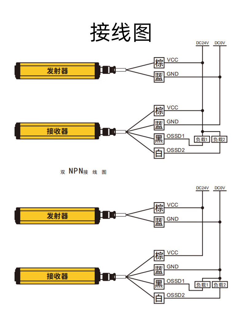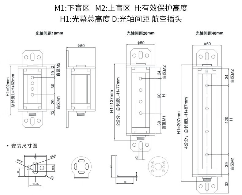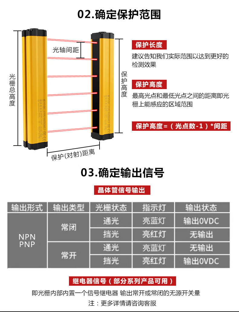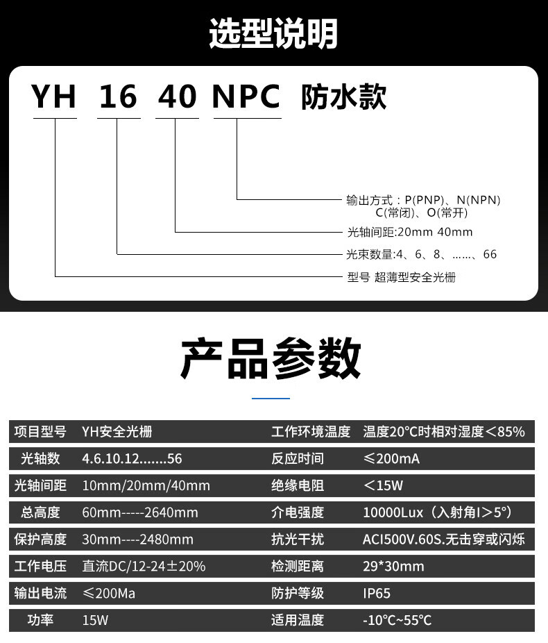 Waterproof light curtain outdoor IP68 through-beam protection device induction photoelectric switch sensor safety grating waterproof model YH04-20-NPC-2M