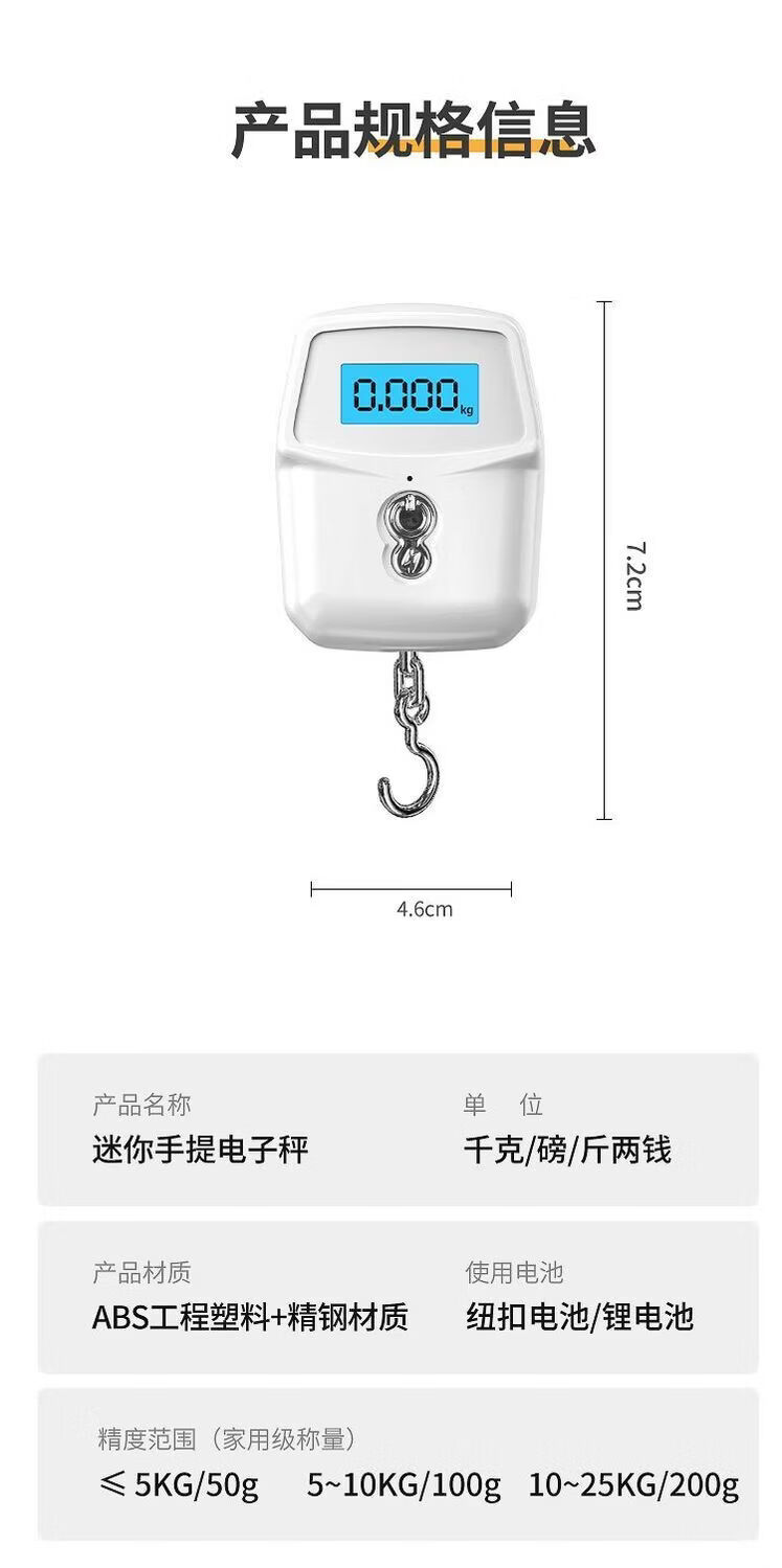Zixian portable electronic scale mini portable grocery shopping express delivery 50 Jin Jin is equal to 0.5 kg, which can be called household grade. White basic model with high precision and free button electronics.