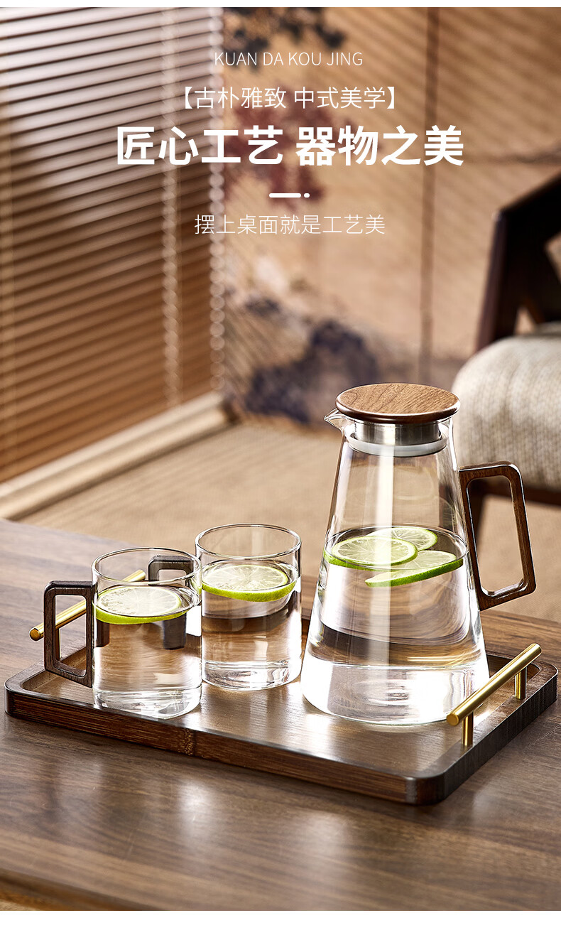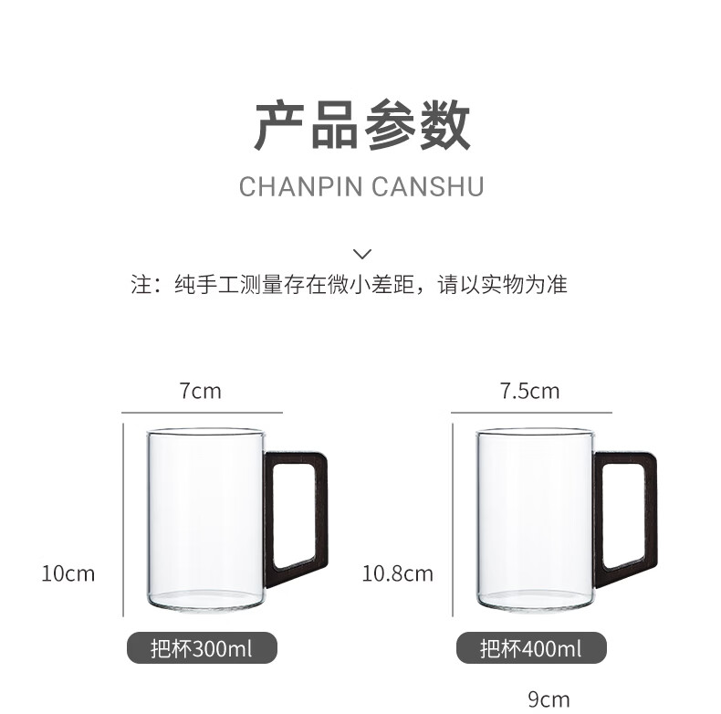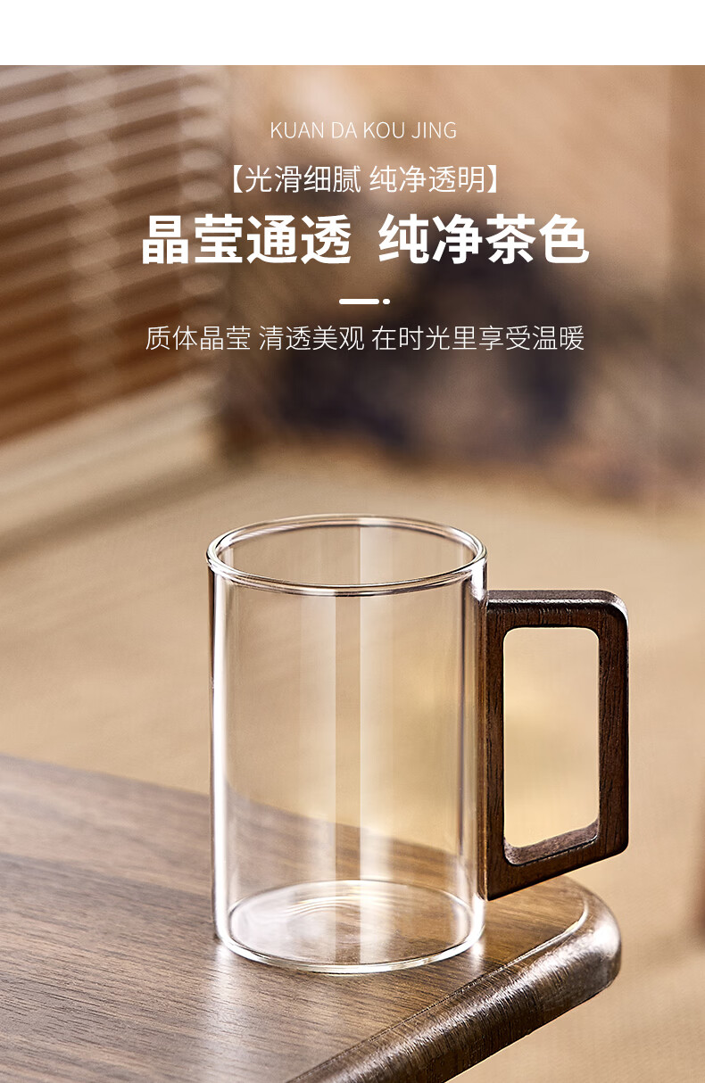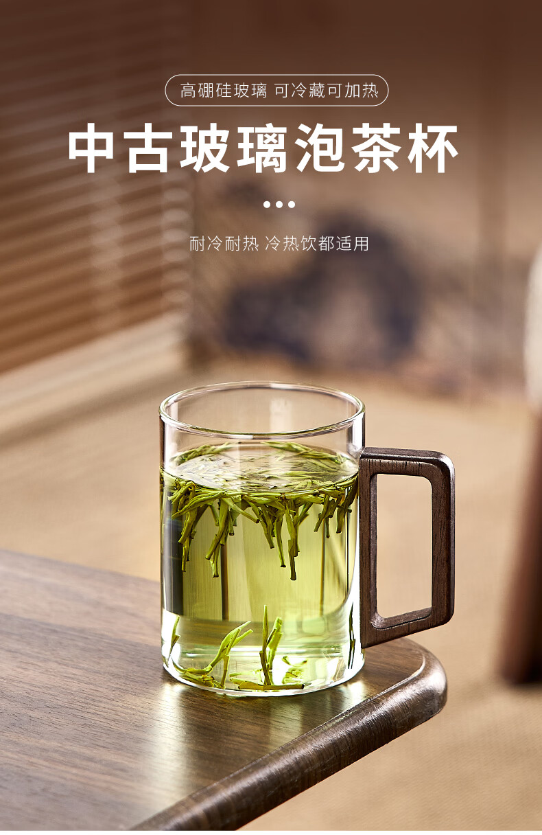 Green apple glass set household high temperature resistant drinking cup household green tea cup with handle hospitality cup office transparent wooden handle cup 300mlx6