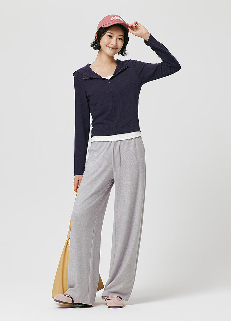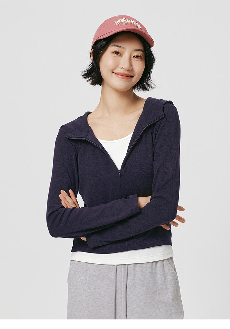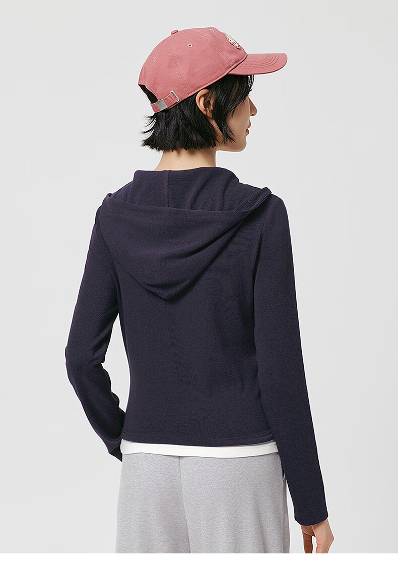 Hotwind shopping mall same style women's long-sleeved hooded cardigan 2026 spring new invisible zipper sports top 29 navy blue M