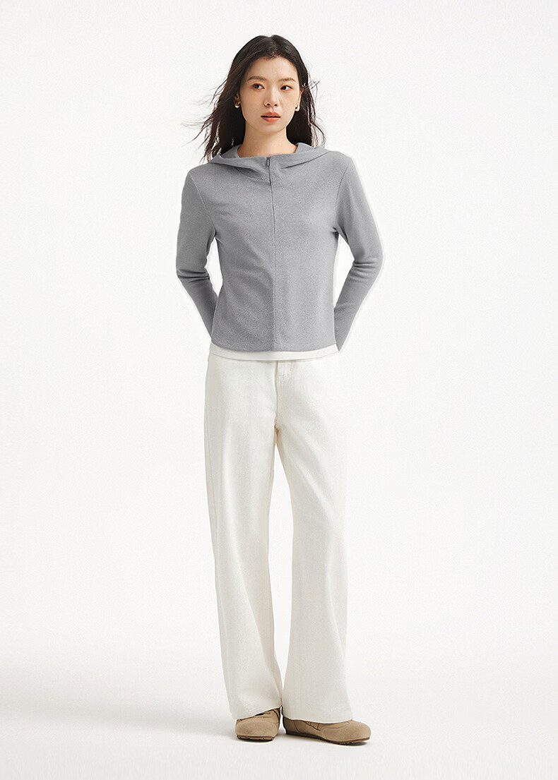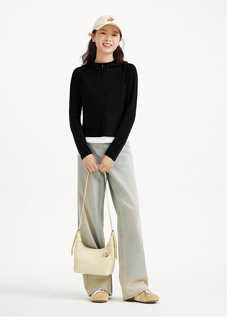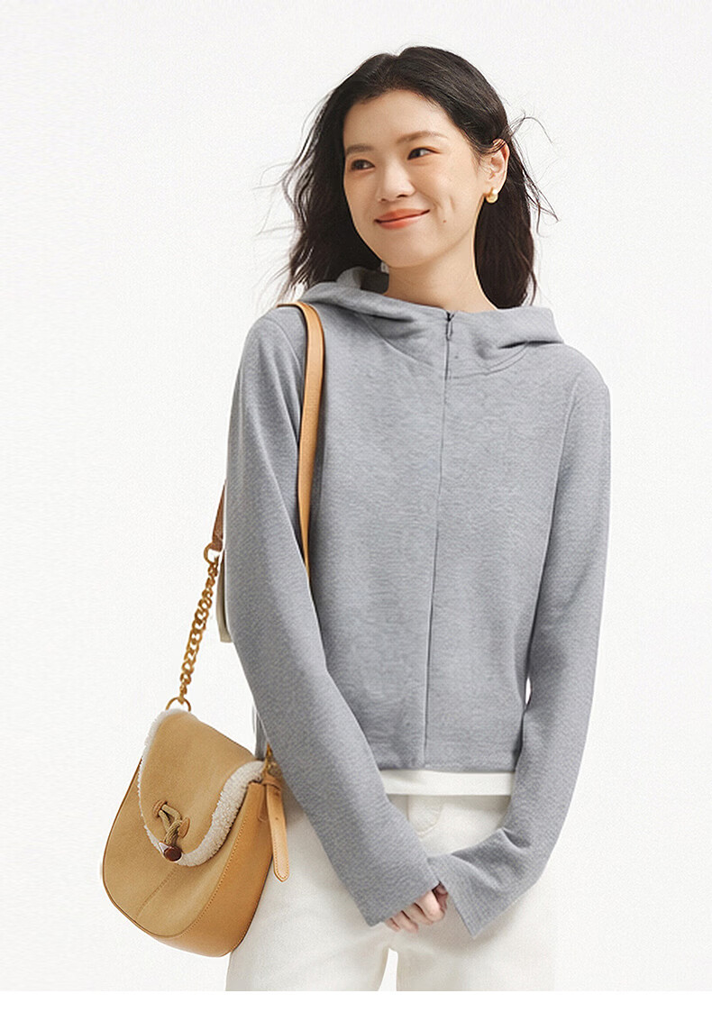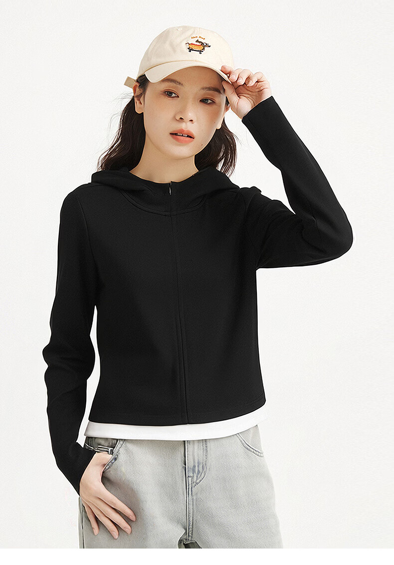 Hotwind shopping mall same style women's long-sleeved hooded cardigan 2026 spring new invisible zipper sports top 29 navy blue M