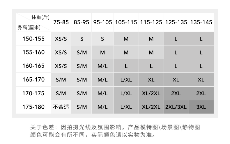 China (cm) 160-165/84-86 165-170 / 88-90 167-172 / 92-96 168-173 / 98-102 170-176 / 106-110